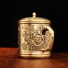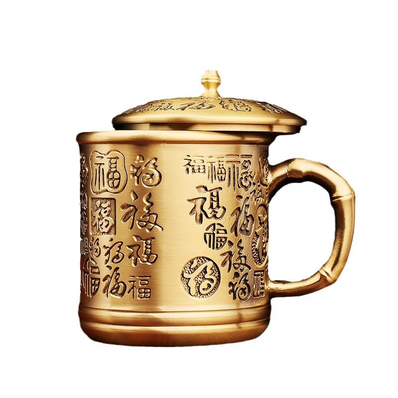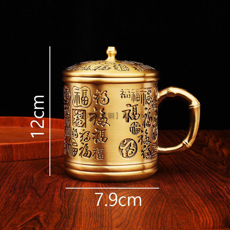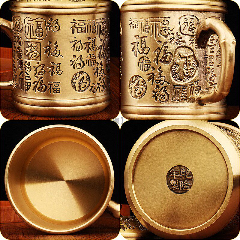 纯铜茶杯老式茶缸黄铜竹节百福杯大号带把带盖70年代喝茶杯茶水杯
