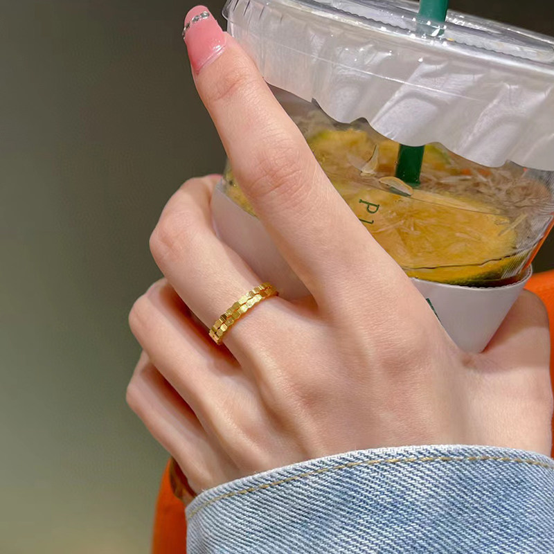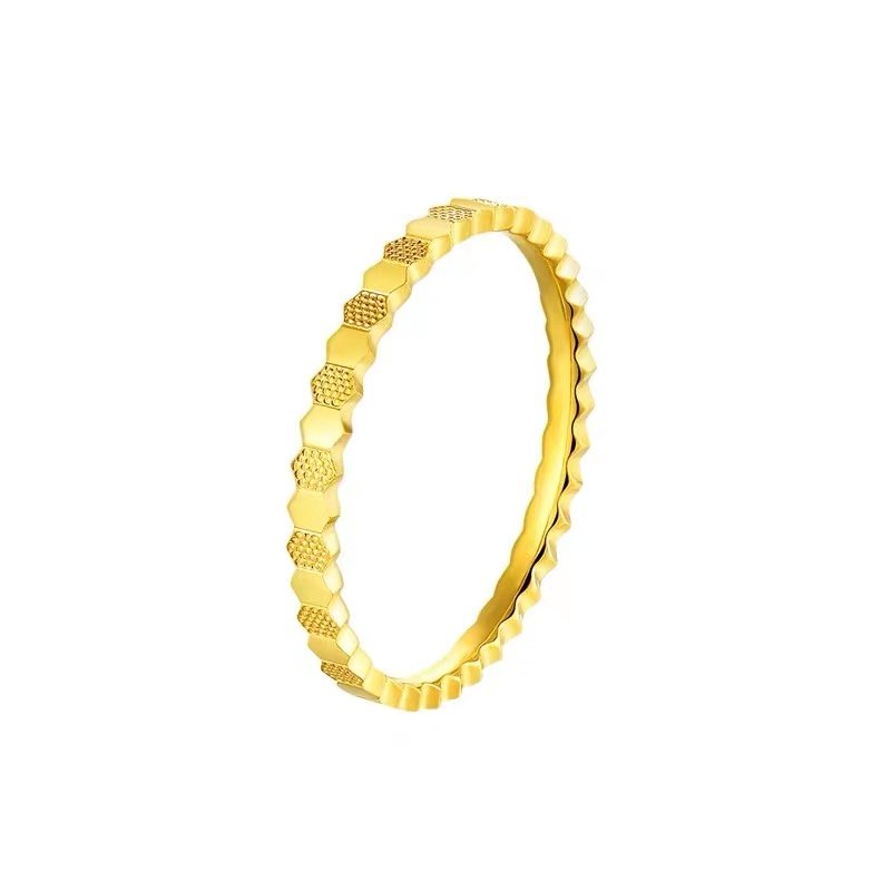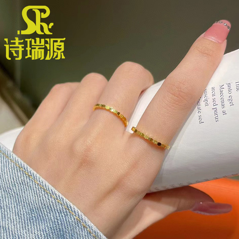 诗瑞源999足金小金圈戒指5G黄金新款蜂巢指环女士时尚几何小尾戒