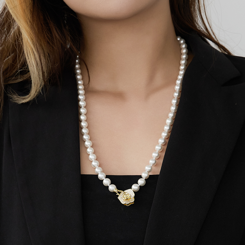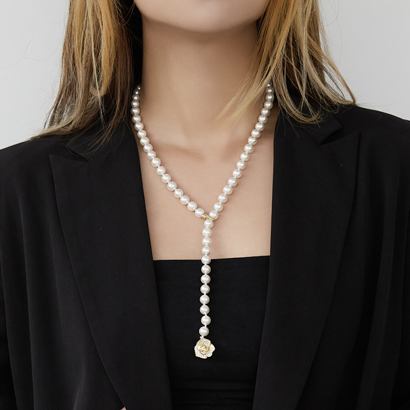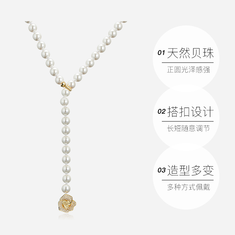 【自营】Idokawa山茶花珍珠毛衣项链女长款串珠配饰轻奢小众秋冬
