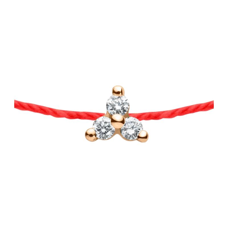 RedLine红绳女士精致手工螺纹18K金三小钻划痕镶嵌新款