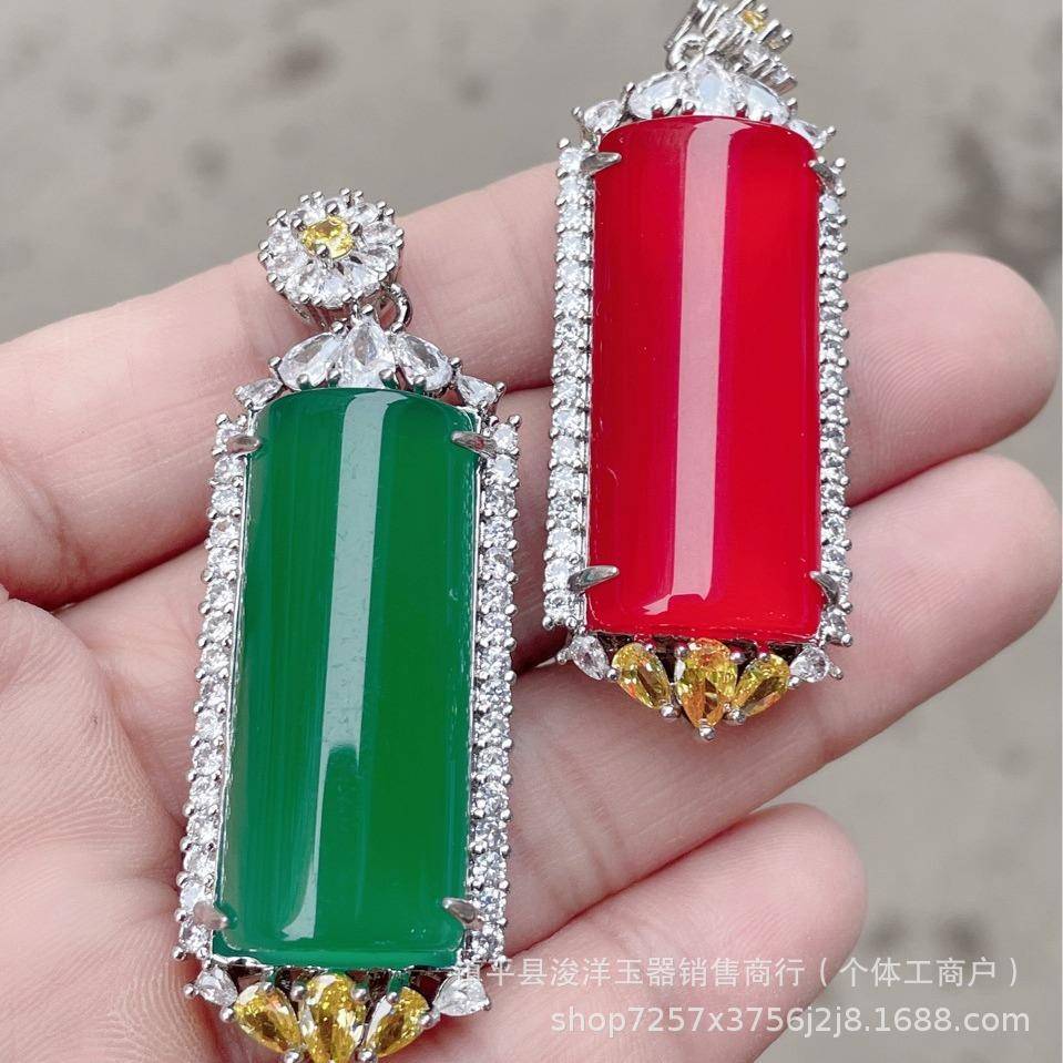 本命年高冰925银镶嵌绿玉髓无事牌吊坠绿玛瑙方牌玉石挂件礼物