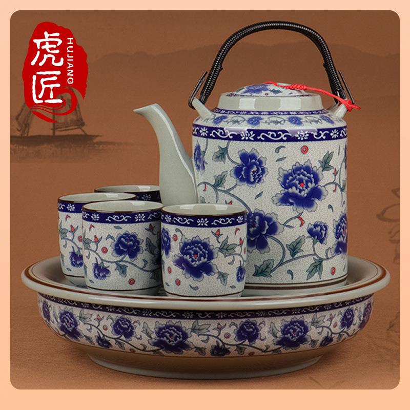 ◎陶瓷茶盘圆形家用大号青花瓷茶海圆茶台简约储水茶船茶具托