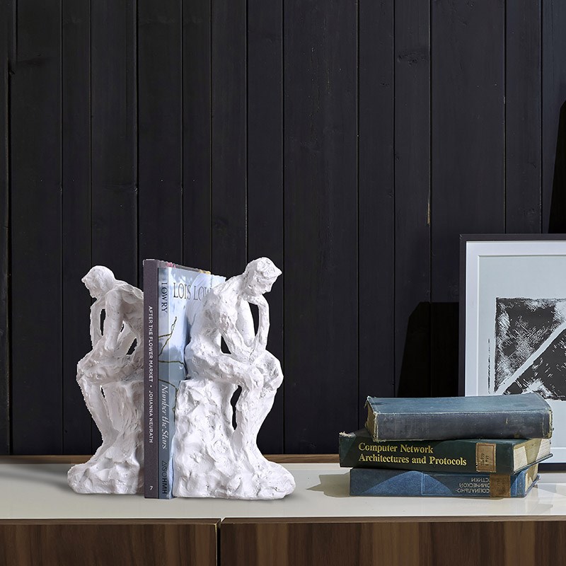 现代风格黑白思考者书立书靠书夹书房样板房书架书桌软装饰品摆件