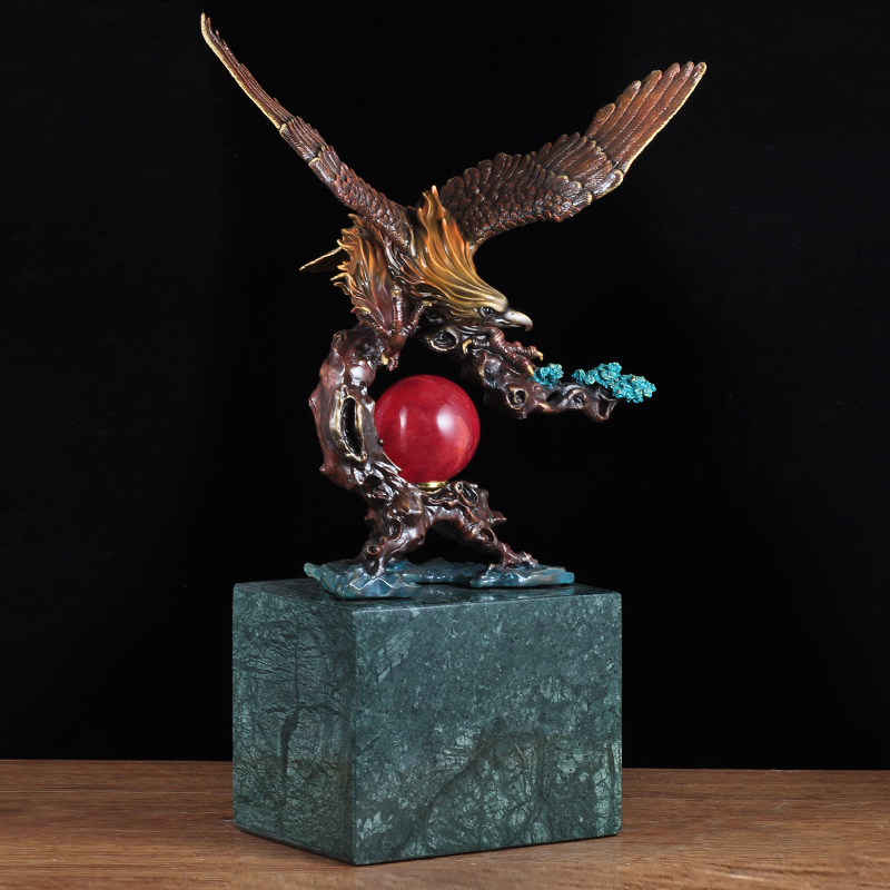 彩铜大展宏图老鹰摆件鹏程万里铜鹰家居客厅书房公司办公室装饰品