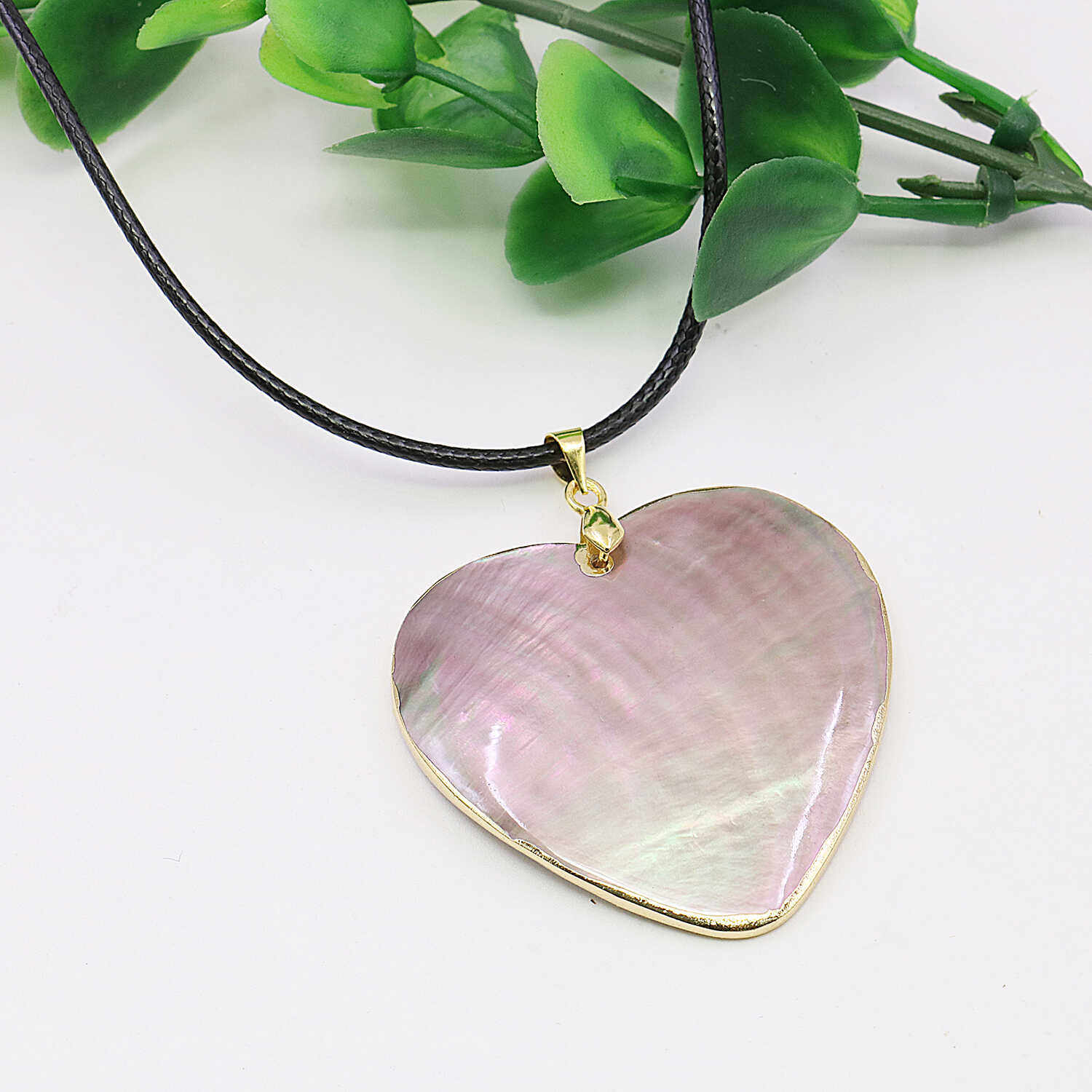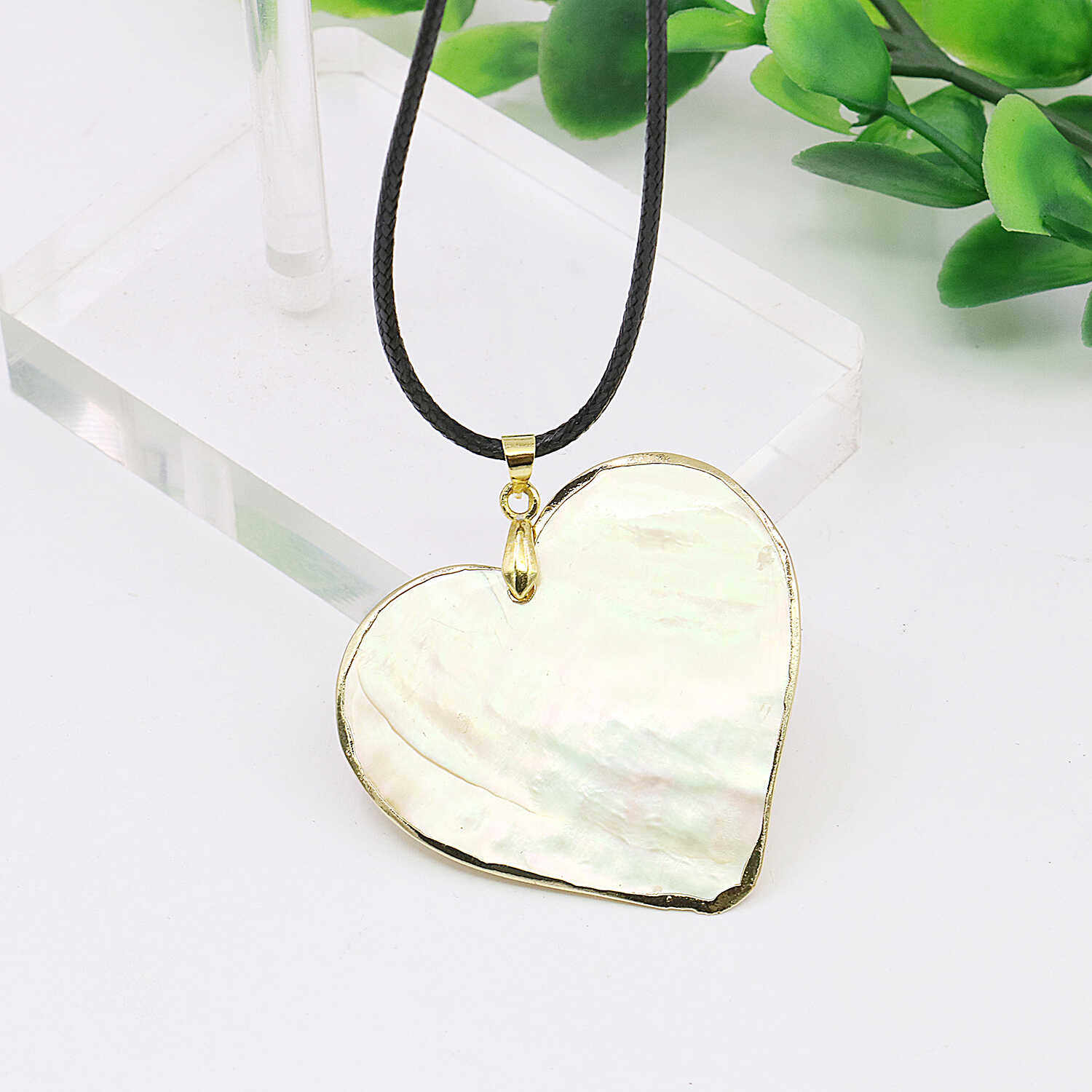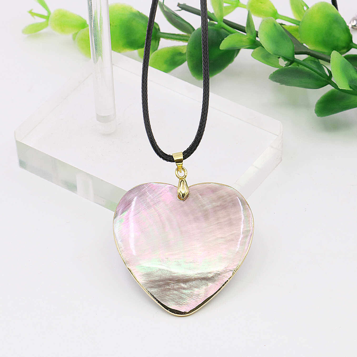 30mm天然贝壳鲍鱼爱心吊坠项链 女锁骨链百搭毛衣链皮绳挂件配饰