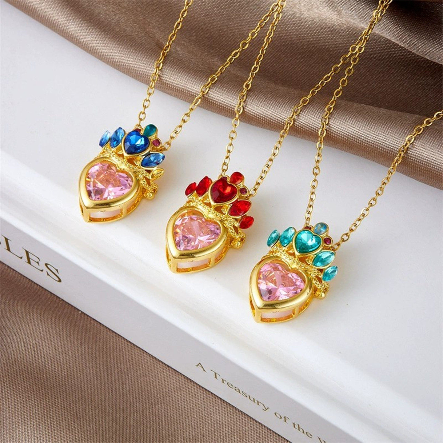 儿童首饰3-5-8-12岁女宝宝小孩子皇冠项链生日礼物金色爱心吊坠女
