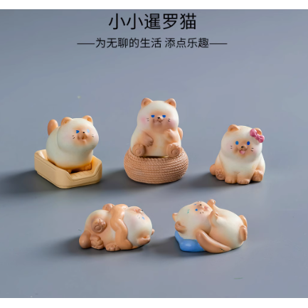 迷你暹罗猫咪公仔动物猫砂盆模型微景观场景桌面摆件