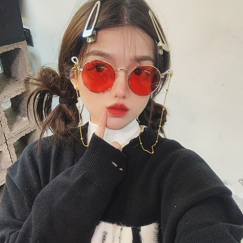 2025女款个性时髦金属红色链条太阳镜ins网红同款凹造型街拍墨镜