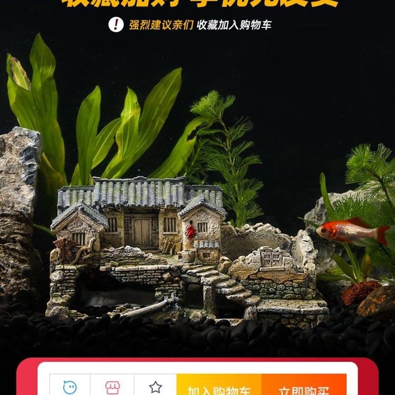 水族箱假山鱼缸造j景装饰品鱼虾躲避屋建筑模型老房子微景观小摆