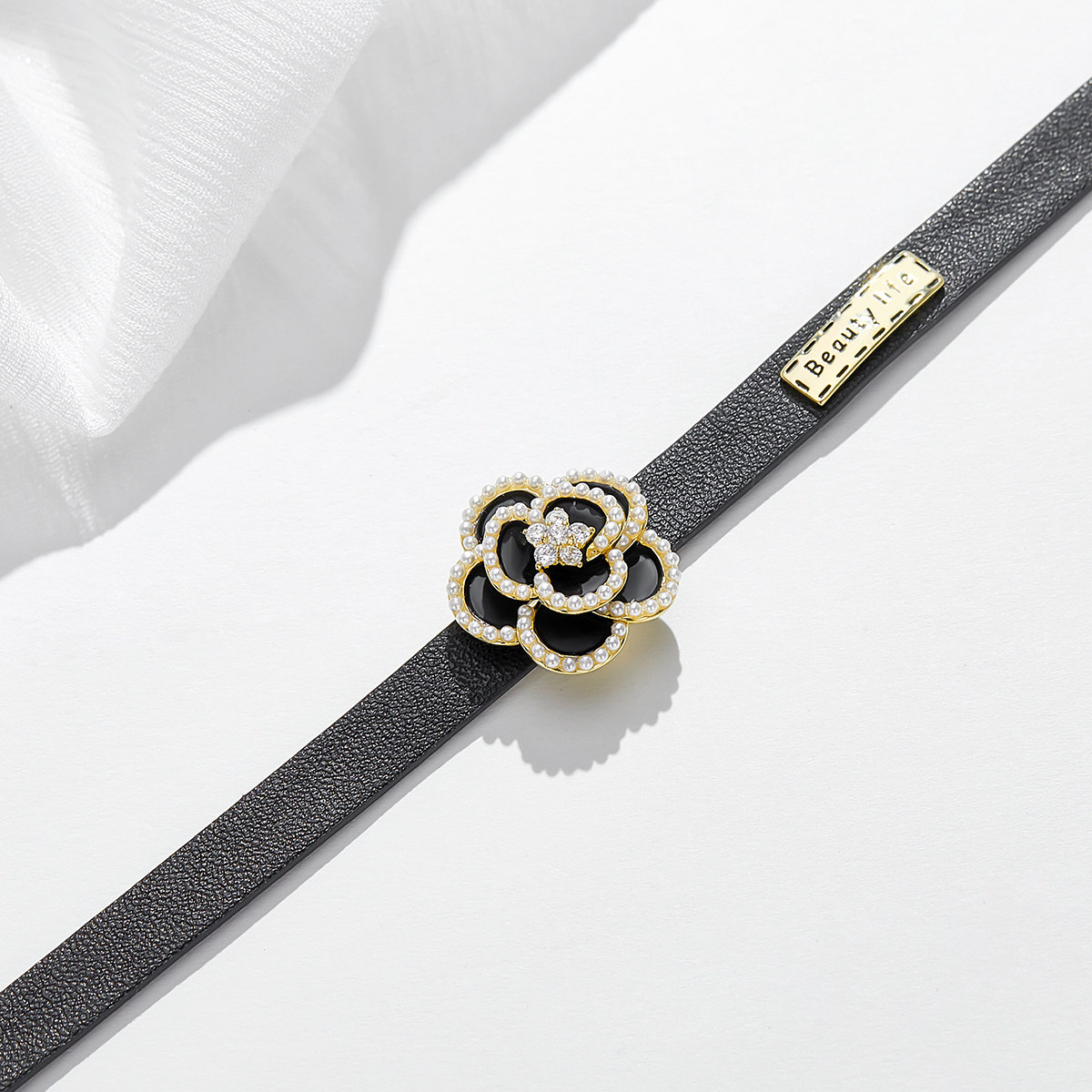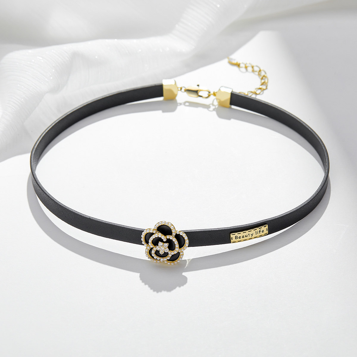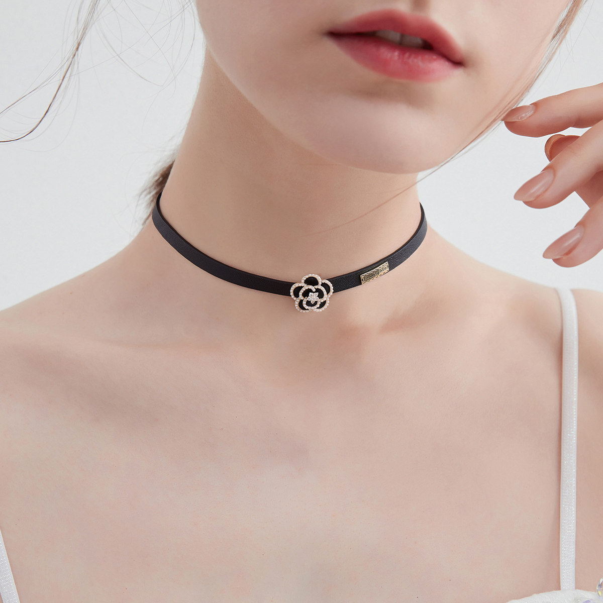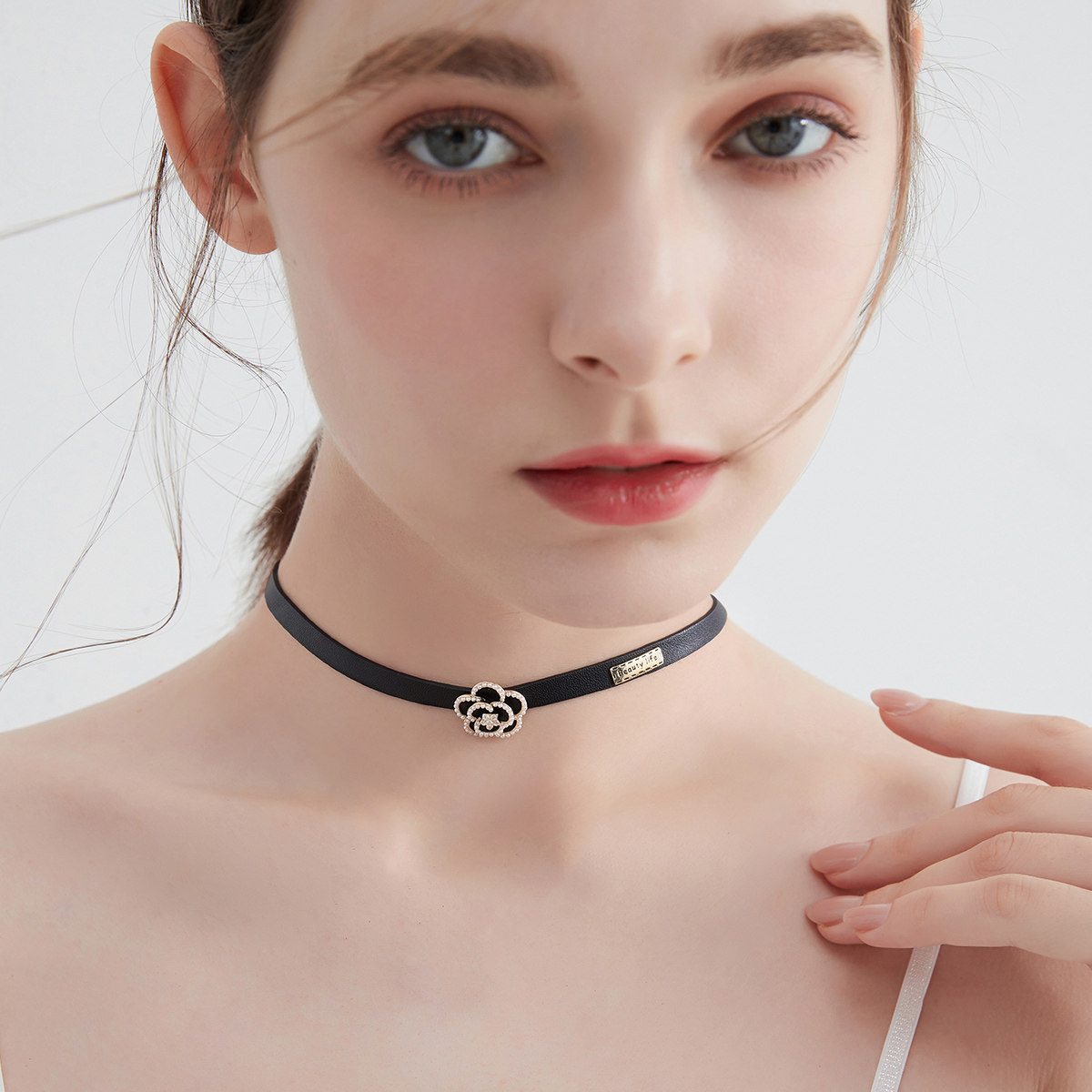 黑色山茶花项链颈链女款轻奢小众高级感chocker颈带脖子配饰项圈