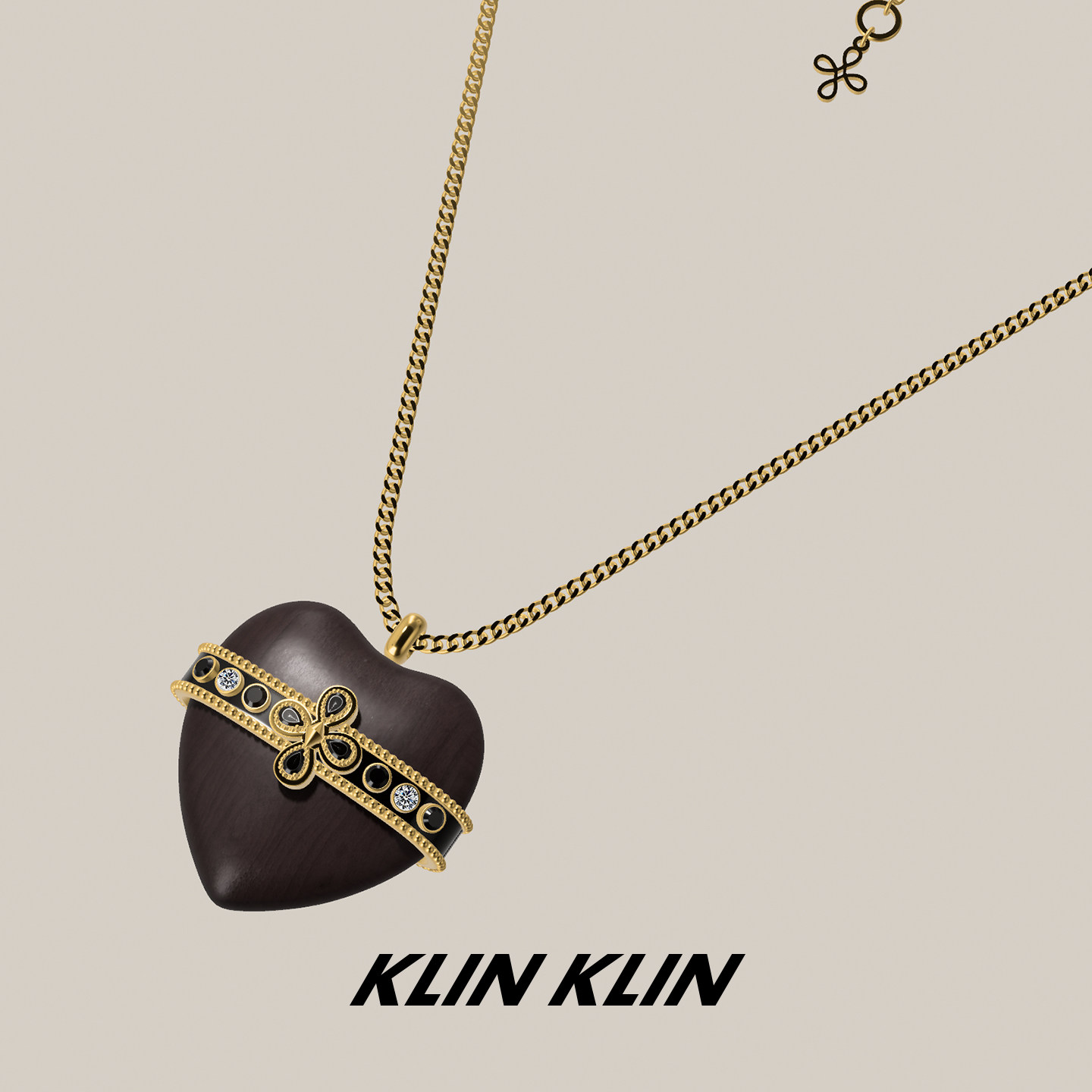 KLINKLIN爱心黑檀木十字花长款项链女毛衣链配衣服锁骨链中古风