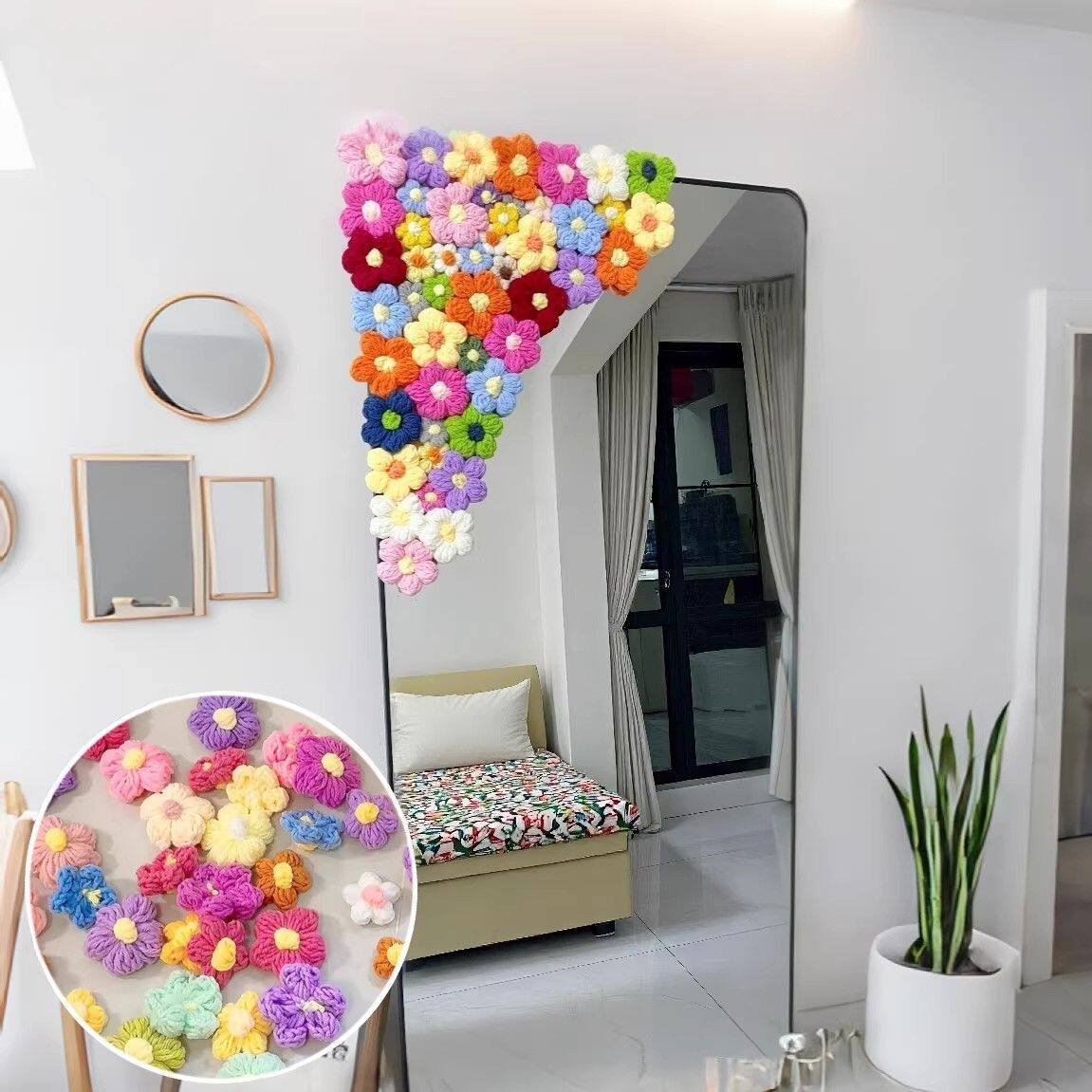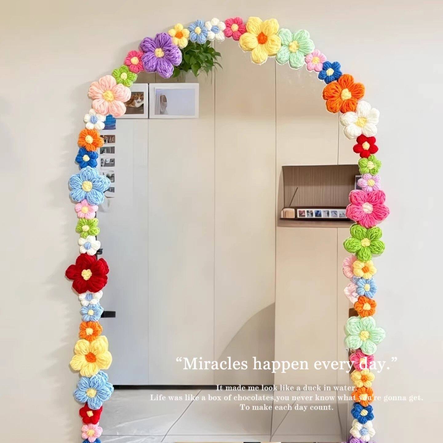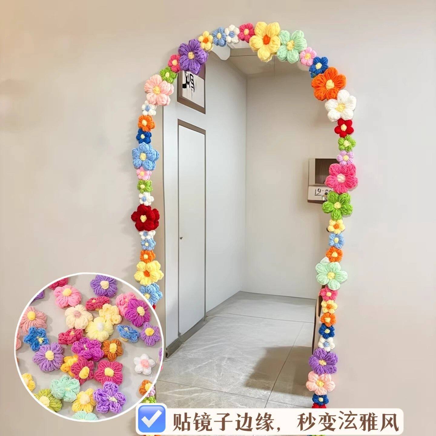 空调管子装饰遮挡镜子多巴胺毛线泡芙小花房间管道美化遮丑神器