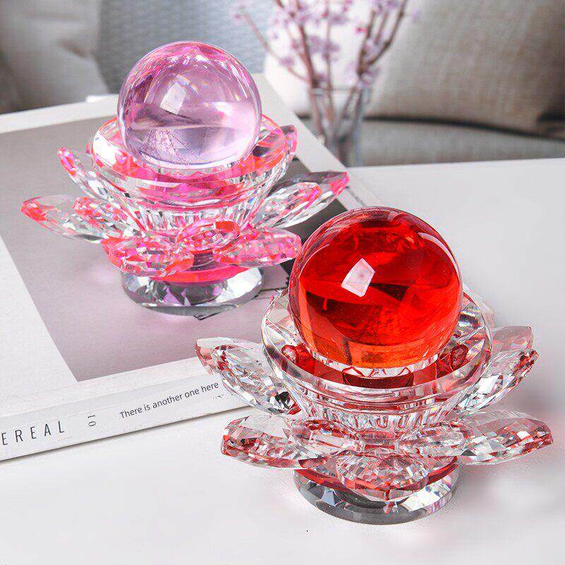 水晶莲花球形烛台可旋转手机眼镜珠宝柜台创意装饰家居中式风格