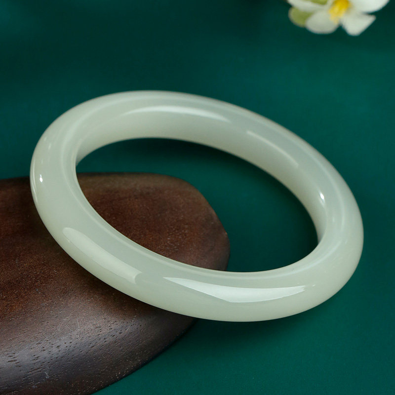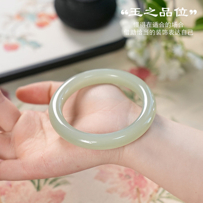 玉说和田玉手镯女款玉镯子冰晴水圆满富贵玉镯子内径约57mm附证书