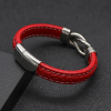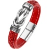 时尚红色皮绳编织手链男女本命年手镯个性钛钢潮手环健身免费刻字