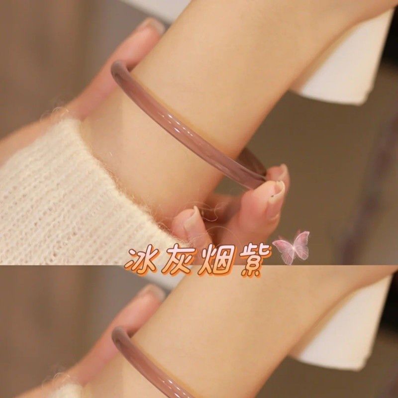 速发一步一响仿玉髓叮当镯细圆条手镯荔枝冻冰灰烟紫仿玉镯一对日