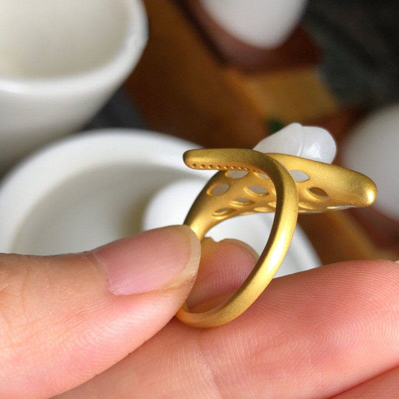 【玉兰花】纯白玉玉兰花戒指古法金开口款女植物清精致优雅指环