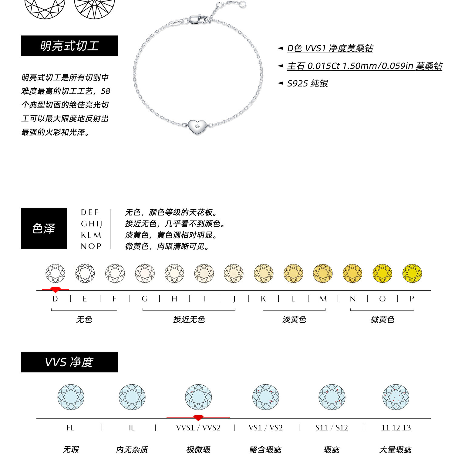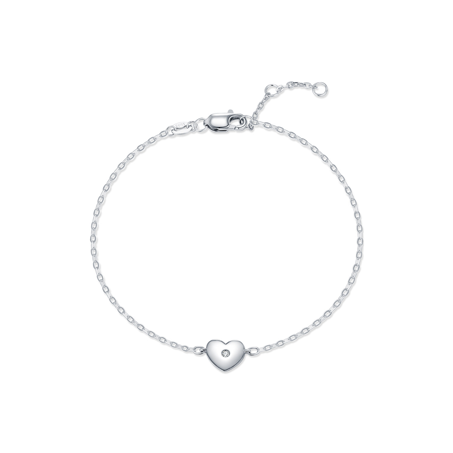 MODIAN摩典莫桑钻S925纯银极简光面爱心闪钻手链女甜美气质手饰