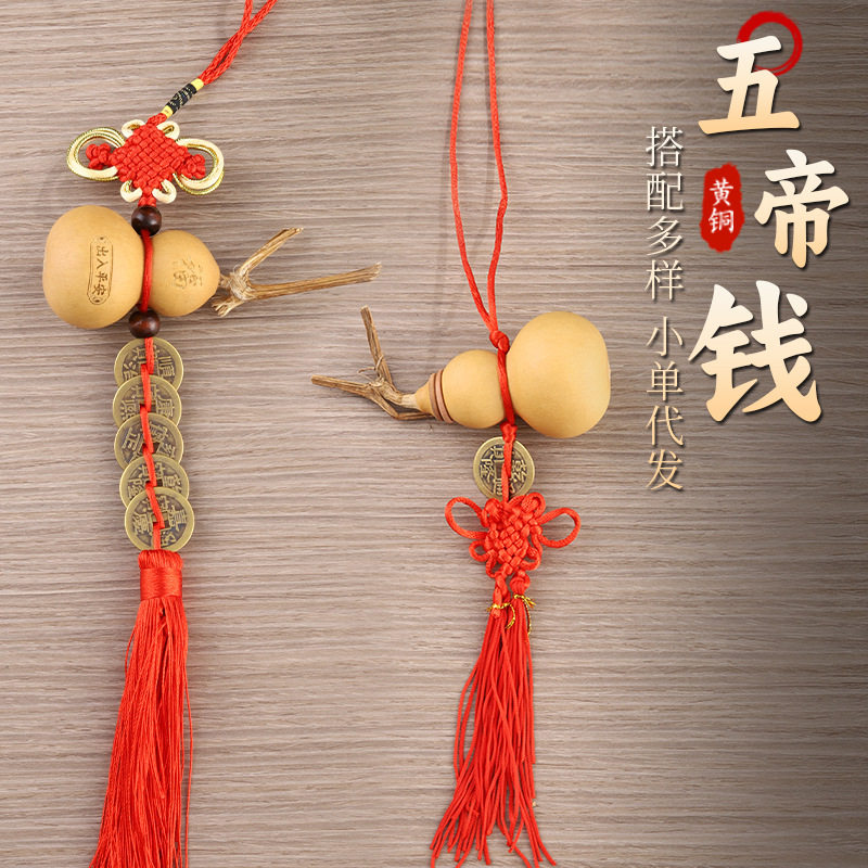 天然真葫芦挂件大门对门客厅卧室玄关金色流苏招财福字平安挂饰