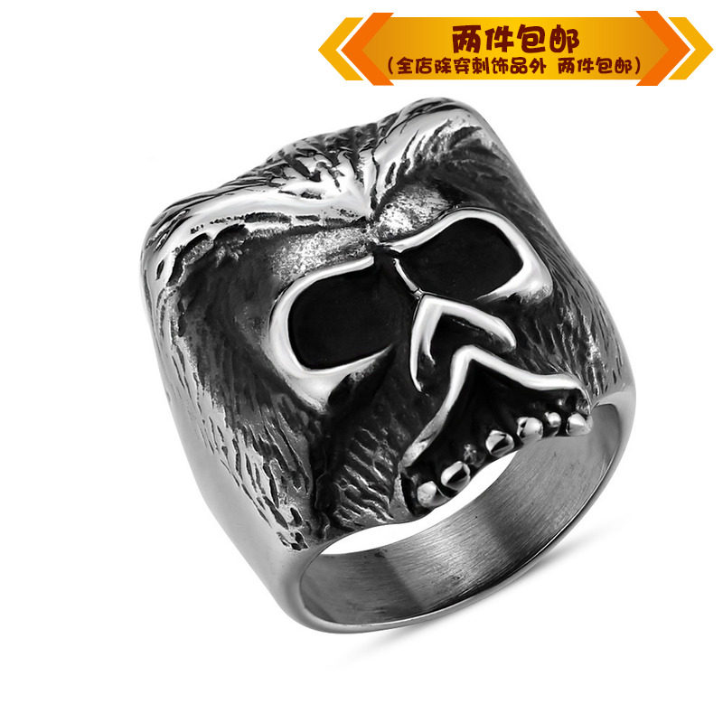 时尚钛钢戒指 霸气时尚骷髅头戒指 潮人夜店男款戒指指环