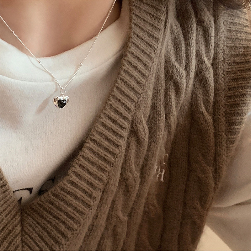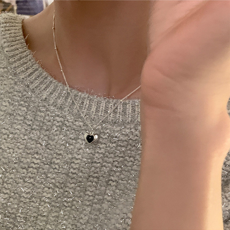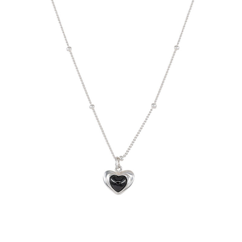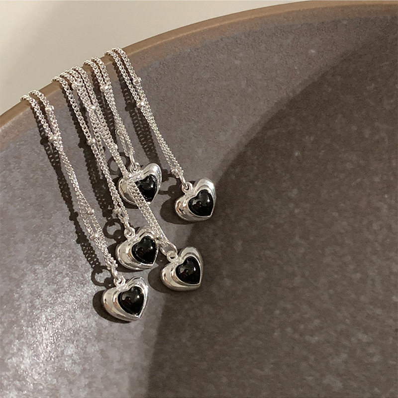 复古黑色爱心项链百搭高级设计感心形锁骨链轻奢气质简约小众颈链