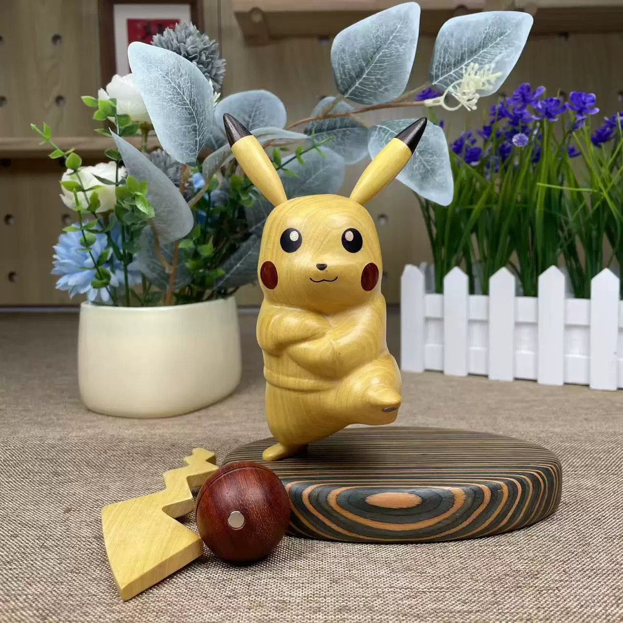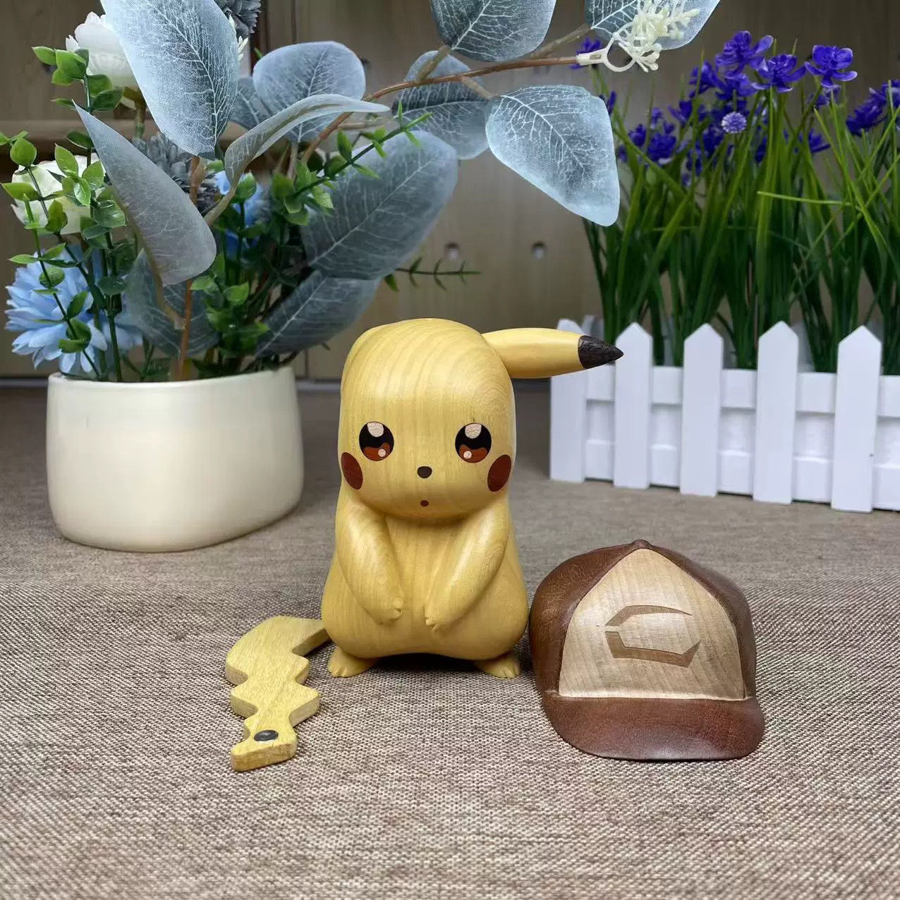 宝可梦皮卡丘桌面摆件实木质创意可爱卡通公仔装饰品生日礼物