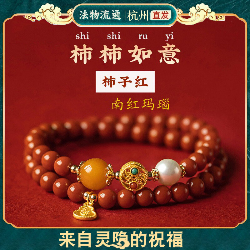 灵隐天然南红玛瑙手串本命年女生多圈红色手链配饰闺蜜送生日礼物