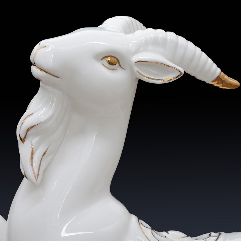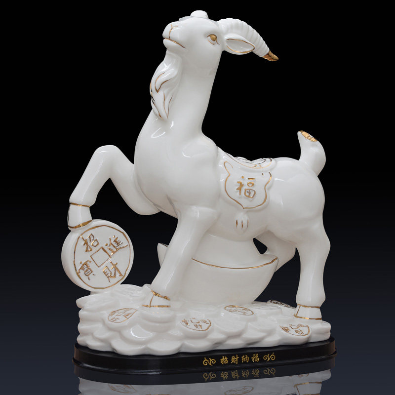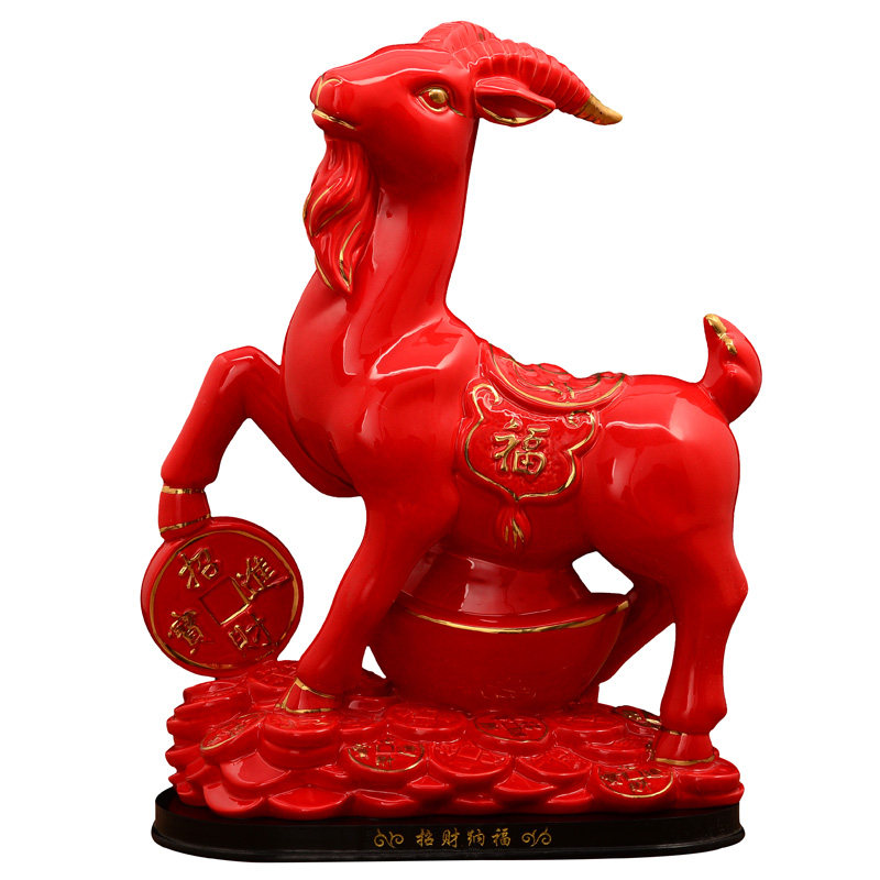 新品1瓷品号红色羊摆件水财r风A招客厅玄关家居山羊瓷器工艺装饰