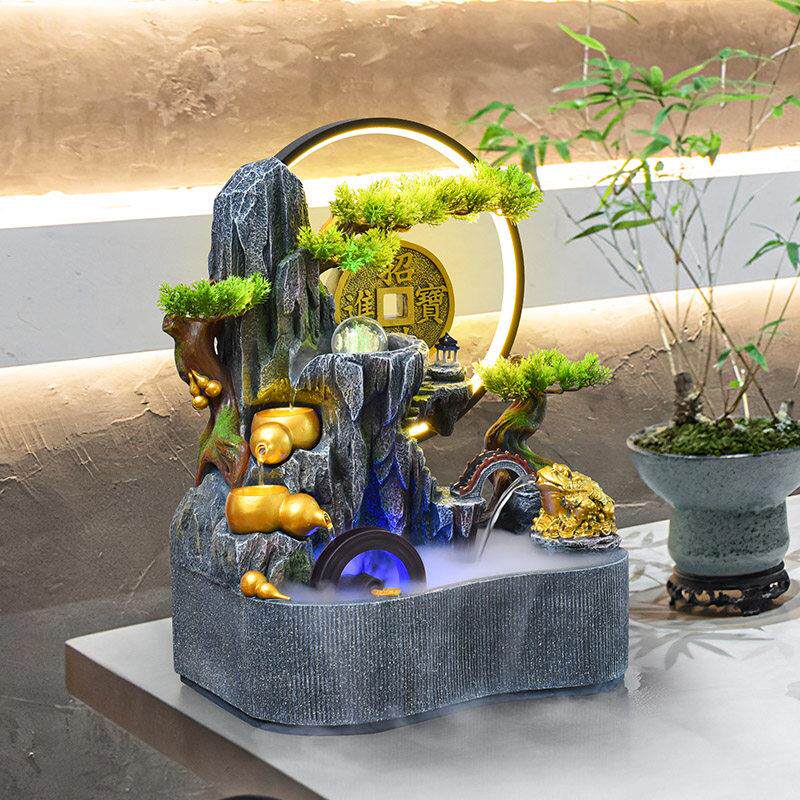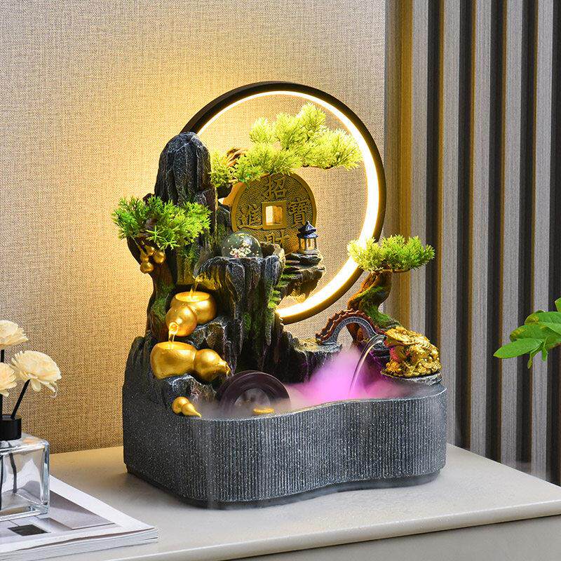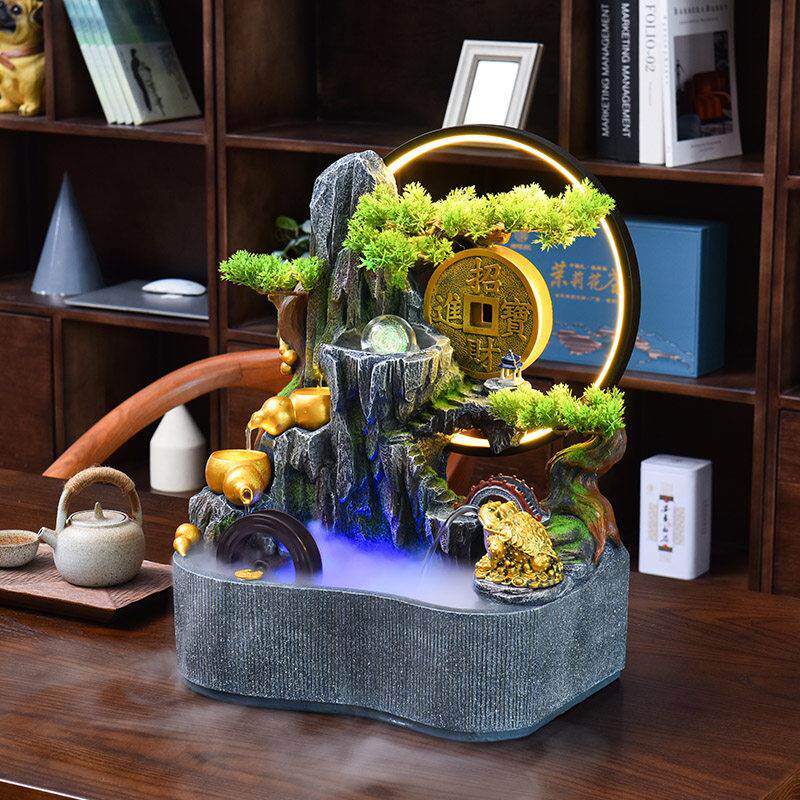 流水摆件循环水高山风水轮招财桌面假山客厅办公室生财开 业送礼