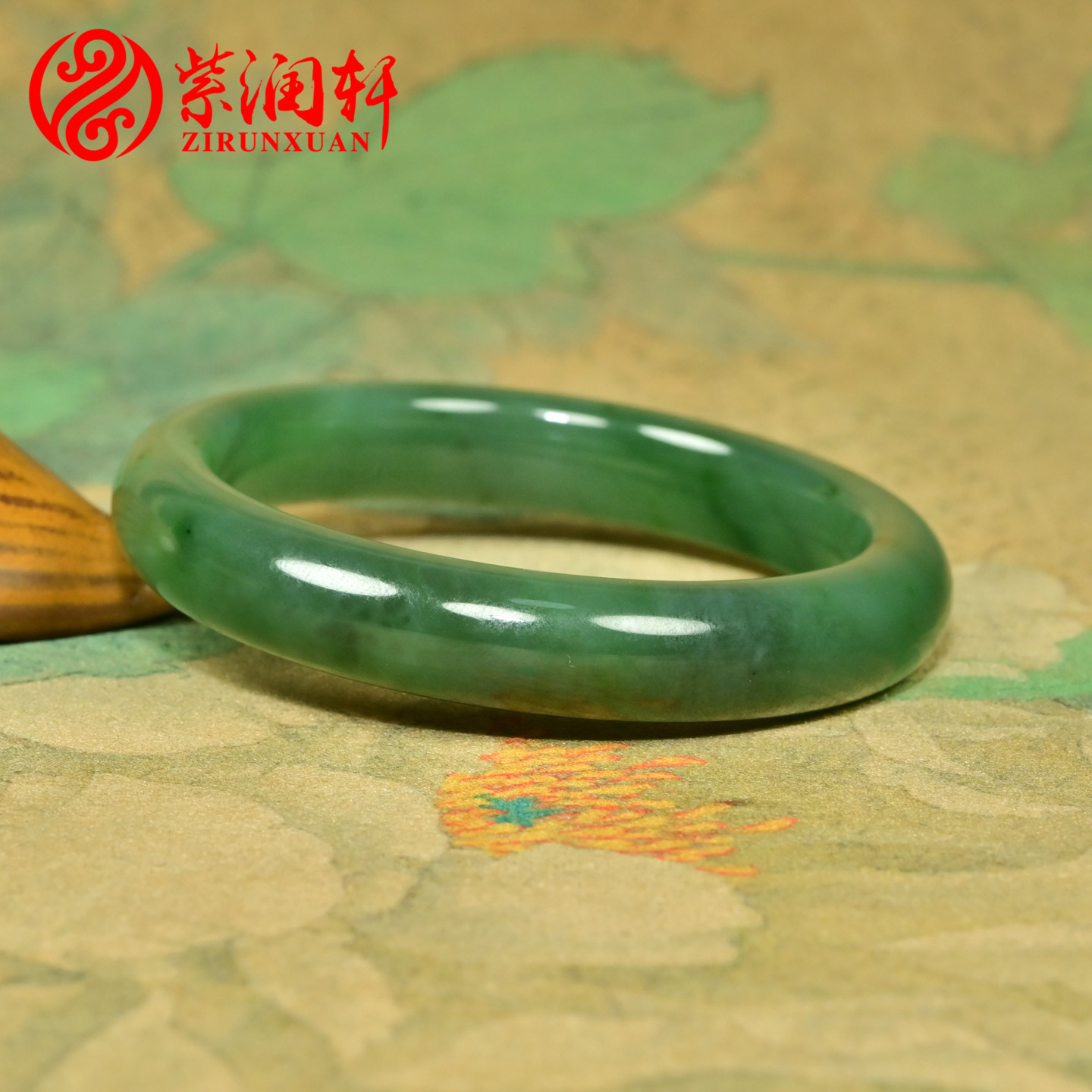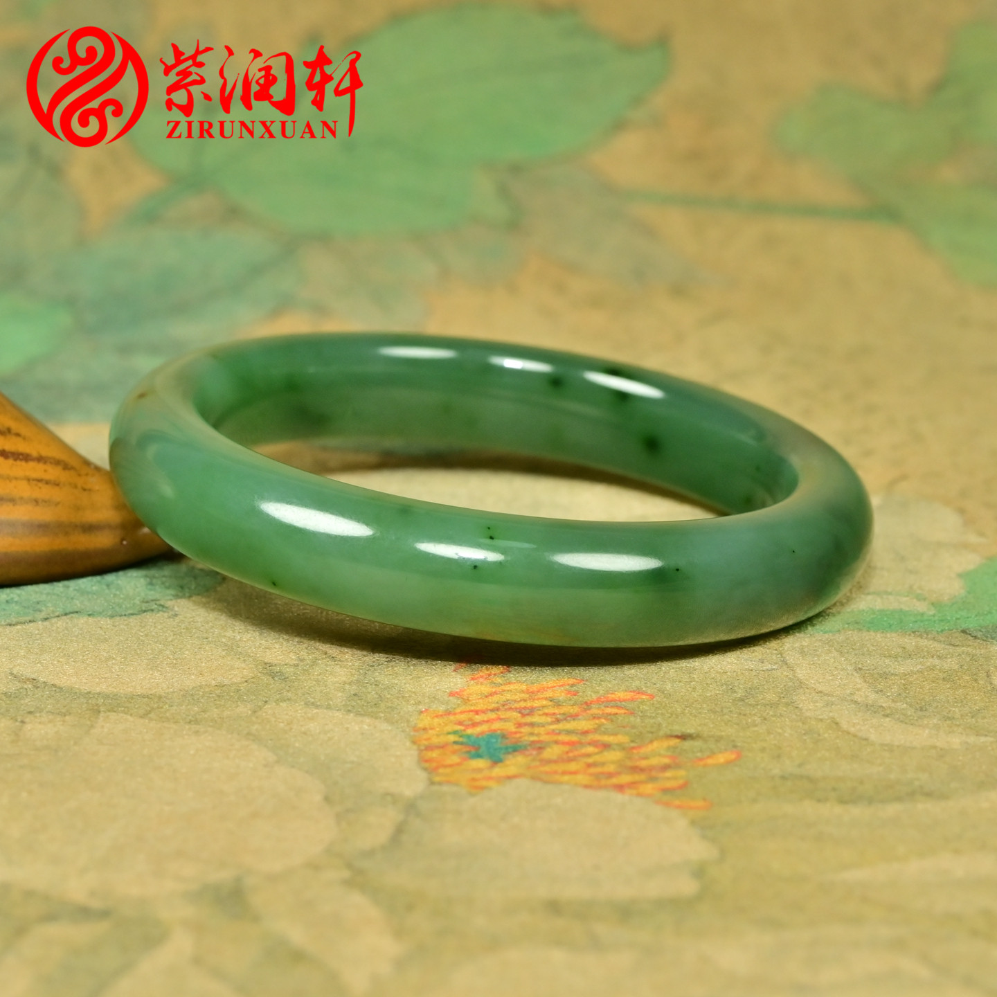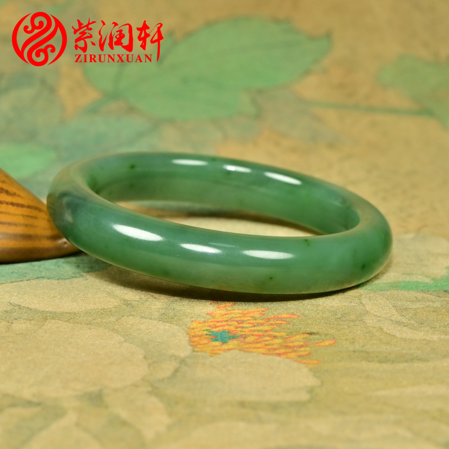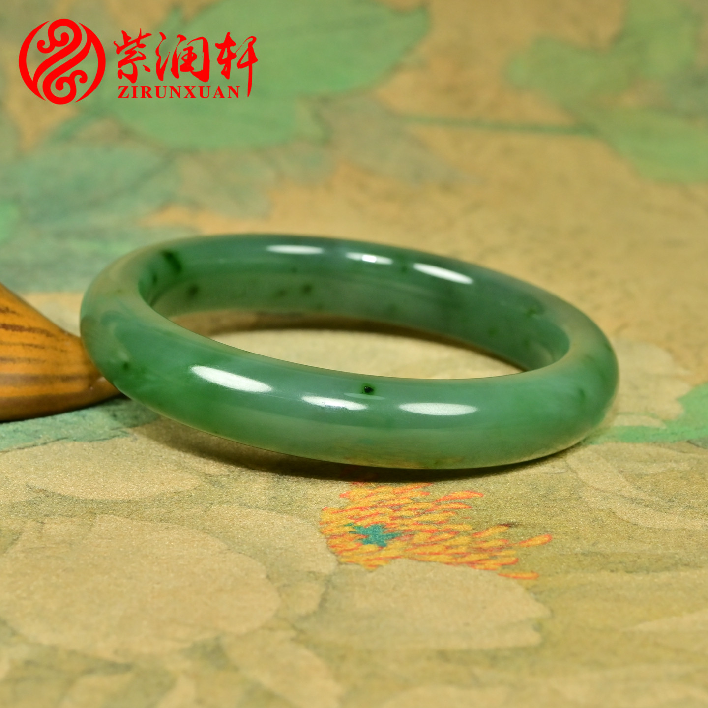 紫润轩新疆和田玉籽料碧玉手镯飘紫调55MM玛纳斯苹果绿镯子收藏级