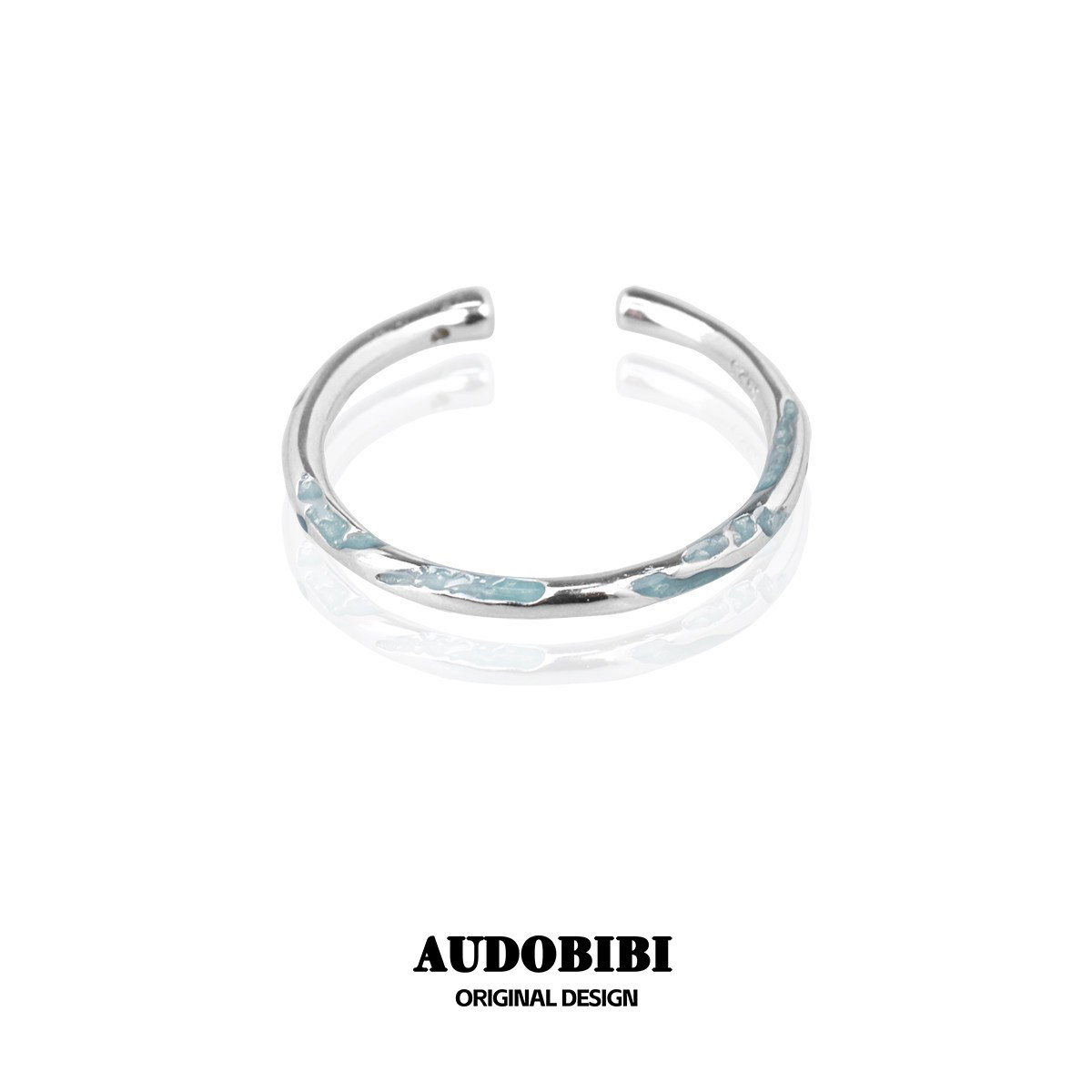 极细!纯银不掉色蓝色素圈戒指原创小众高级冷淡风叠戴食指戒