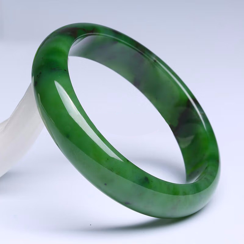 正品新疆菠菜绿玉手镯玉石玉器手镯玉镯子女款送证书