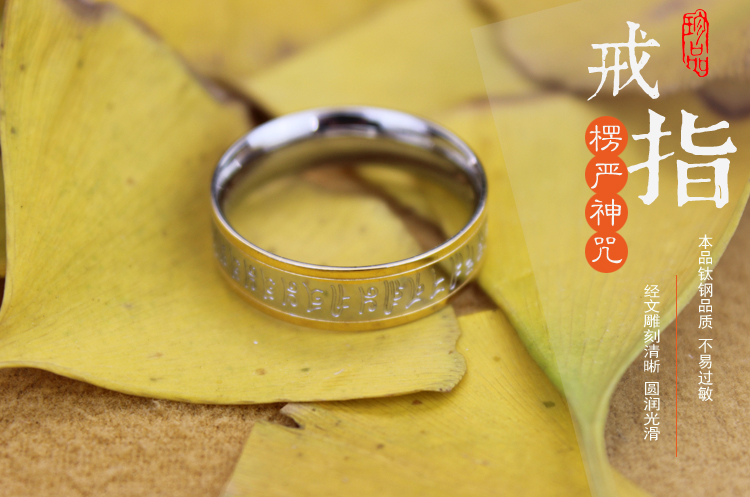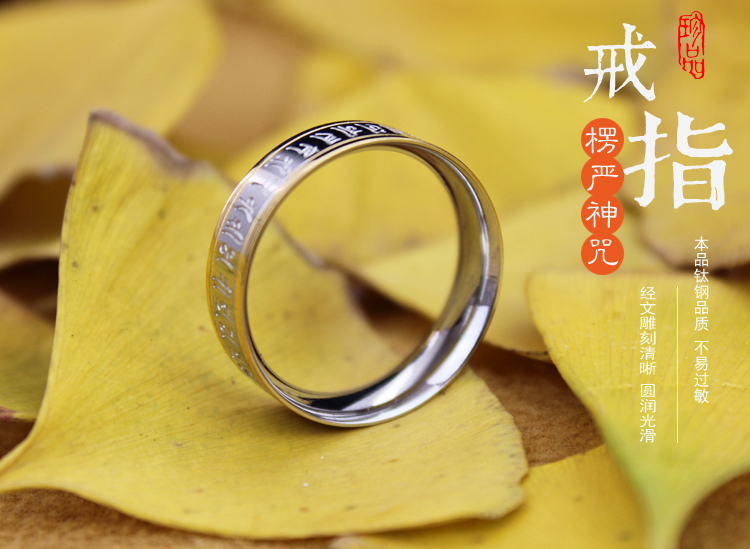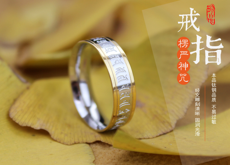楞严咒转运戒指六字真言护身指环梵文楞严咒戒指钛钢刻字戒子手饰