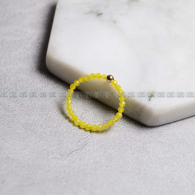 Ciel原创天然黄色玛瑙戒指2mm不规则切面珠小指环关节戒尾戒迷你