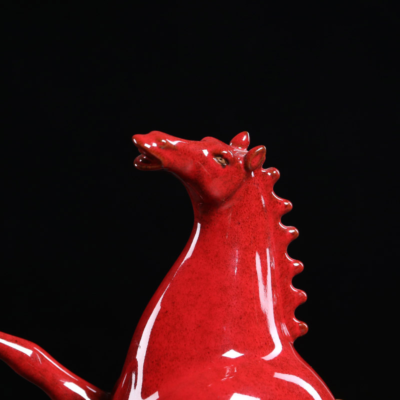 德化陶瓷马摆件红色招财马到成功生肖动物家居客厅博古架工艺礼品