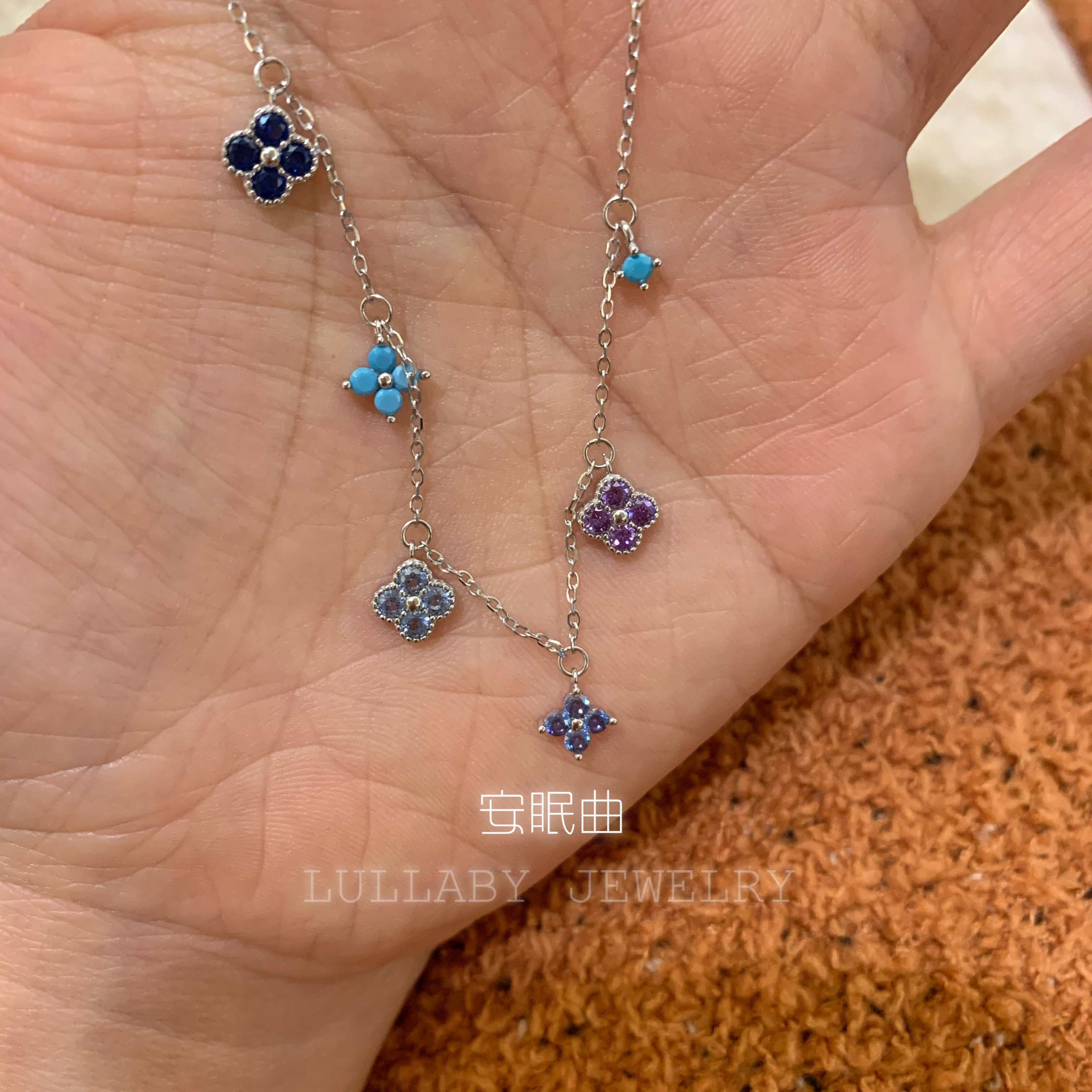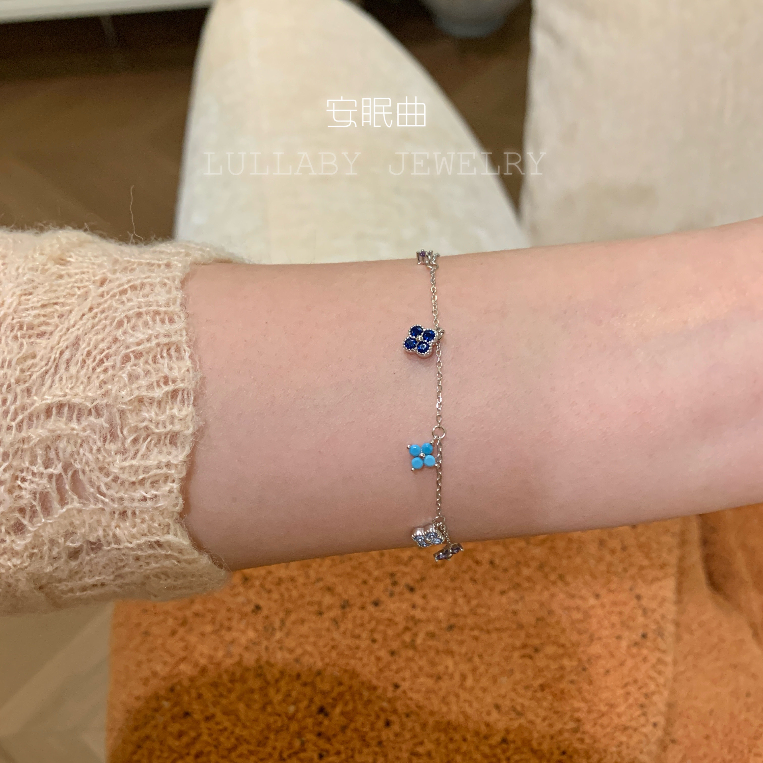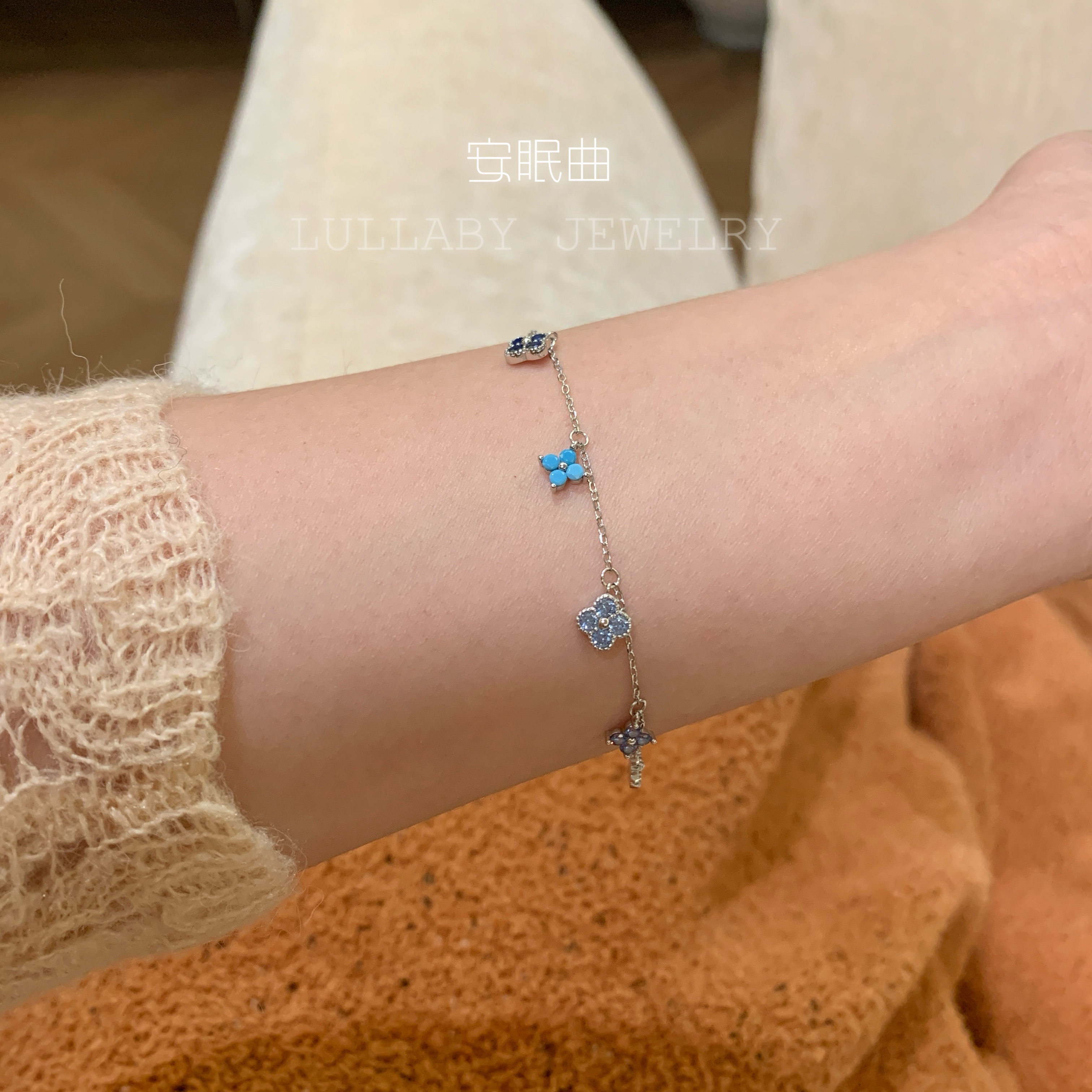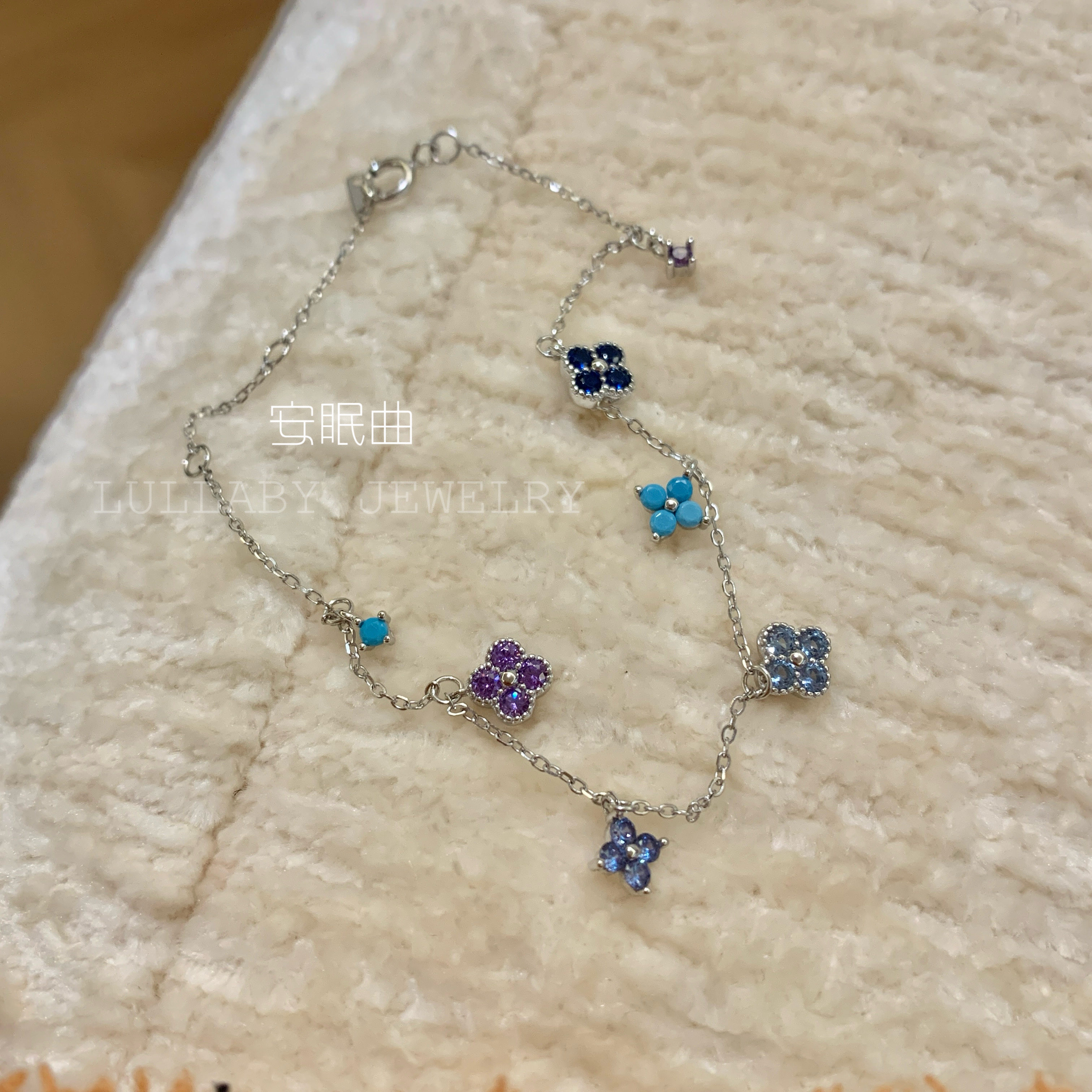 幸运开年!洗手不用摘s925纯银不掉色蓝色四叶草手链小众高级百搭