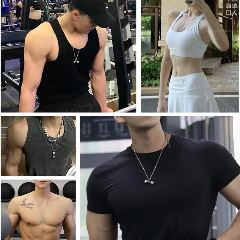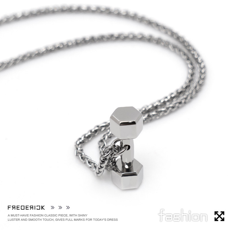 FDK哑铃项链男士男生高级感毛衣链肌肉男健身吊坠运动定制刻字潮