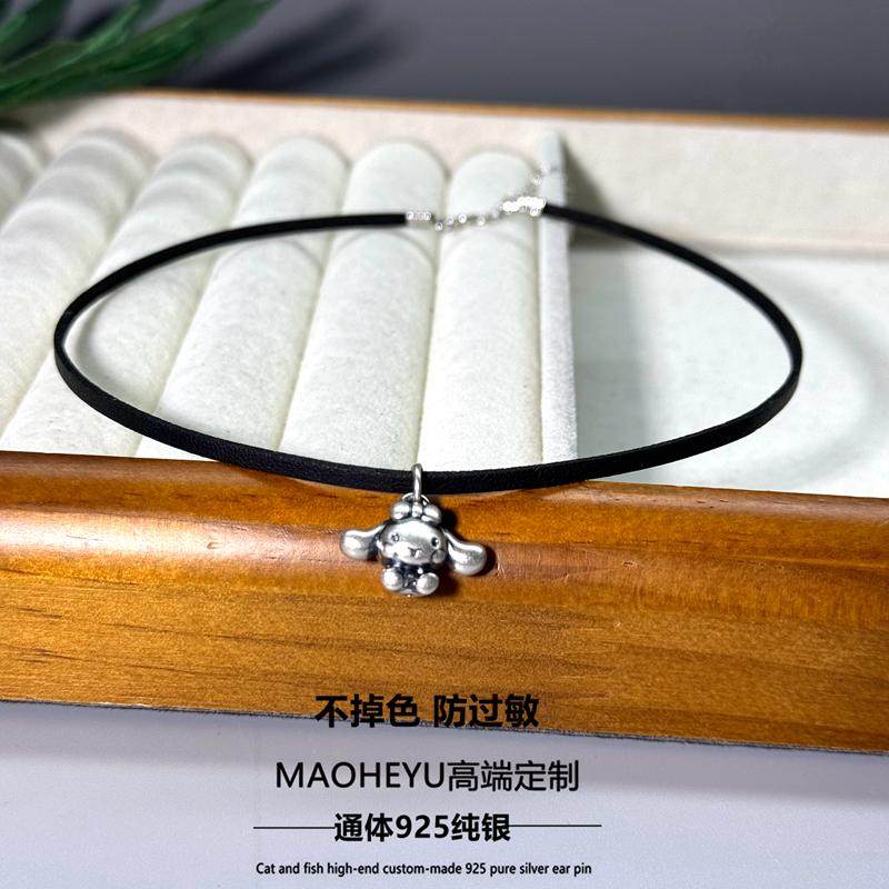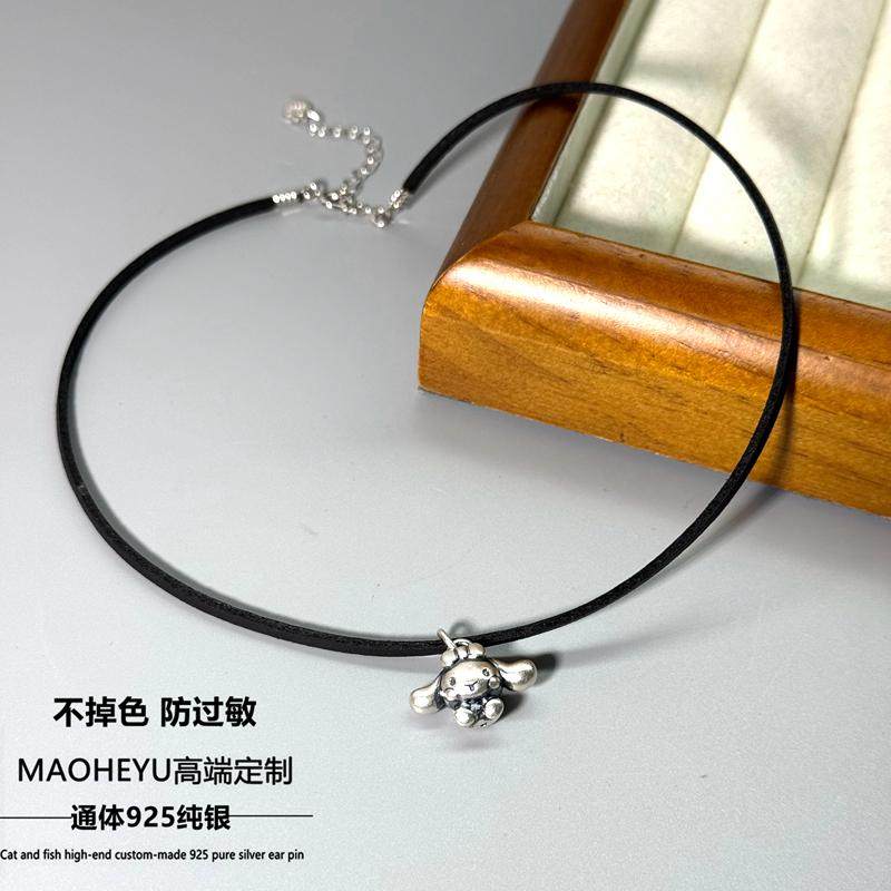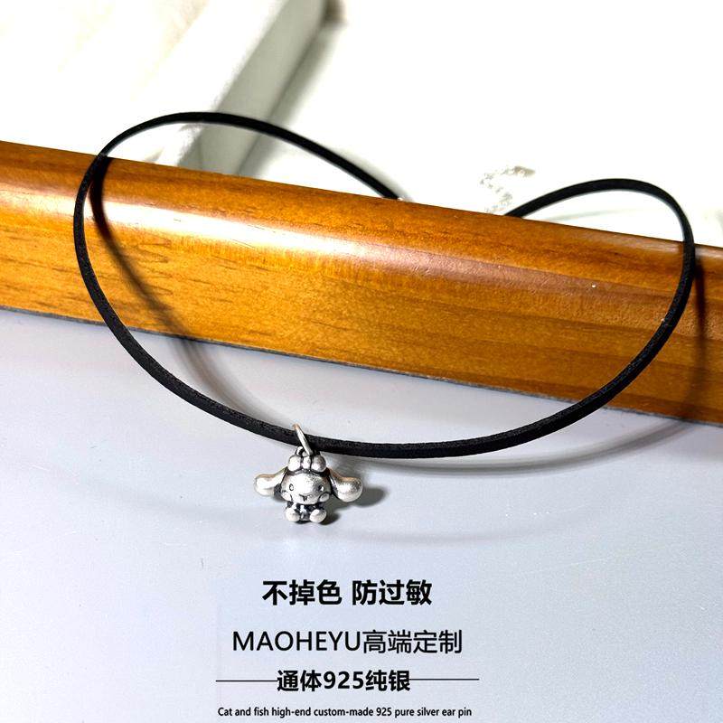 S925纯银玉桂狗黑色皮绳项圈女choker颈链小众设计甜酷百搭个性潮