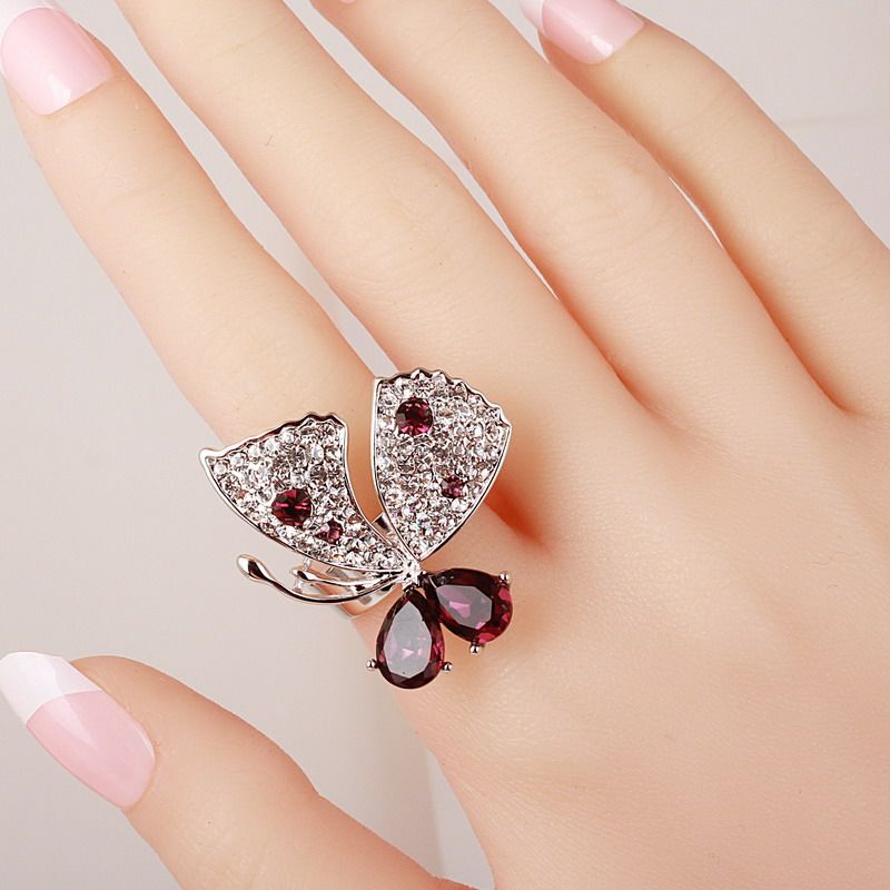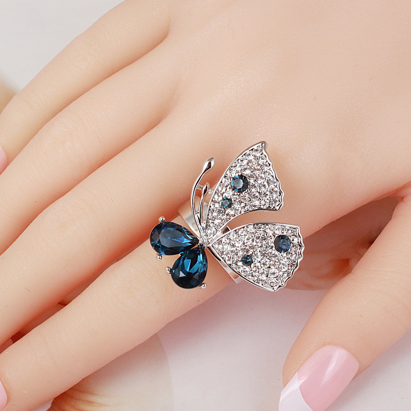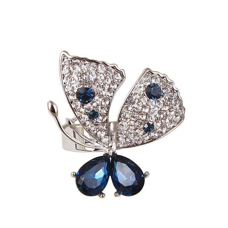 欧美时尚夸张食指戒指女水钻蝴蝶大码开口戒日韩个性装饰指环饰品