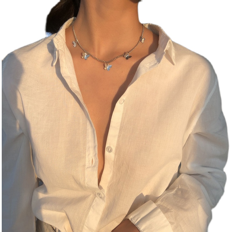 ins冷淡风金属蝴蝶吊坠项链简约个性百搭颈链小众设计网红锁骨链