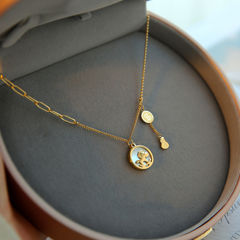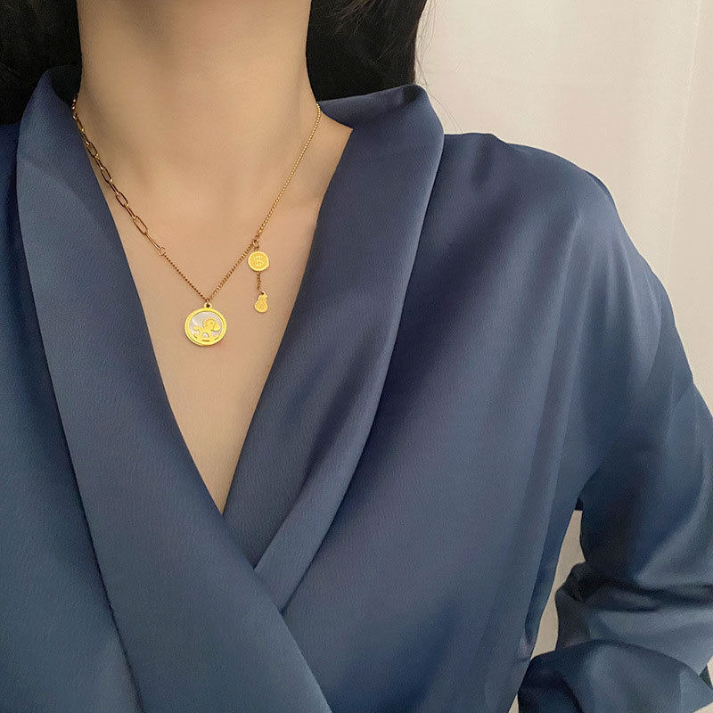网红木马吊坠钛钢项链不掉色锁骨链轻奢首饰女夏小众百搭马上有钱