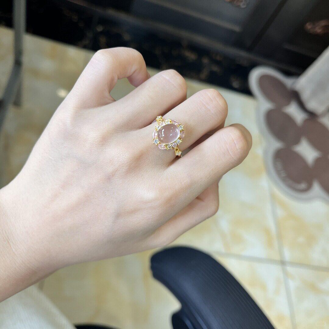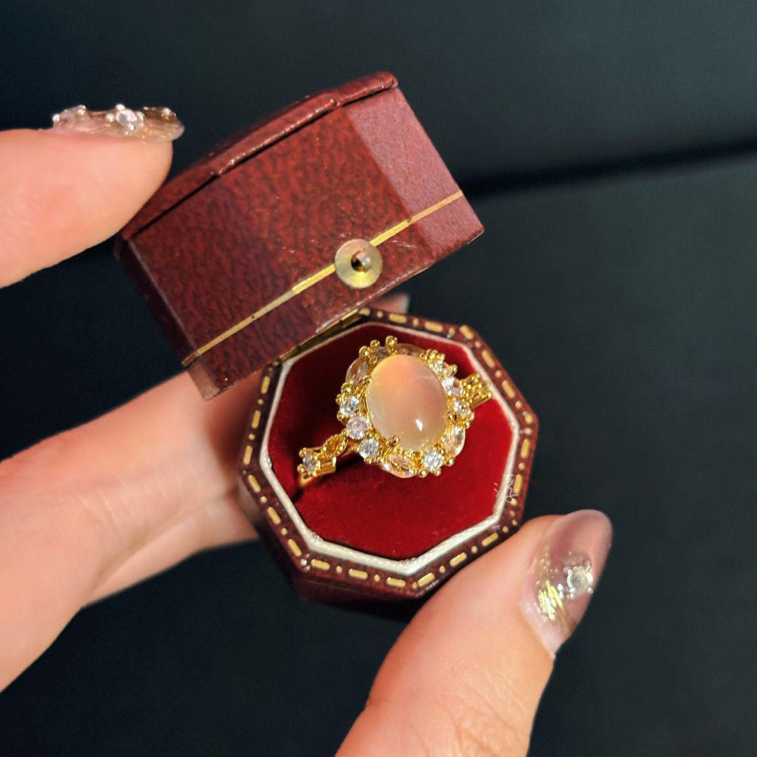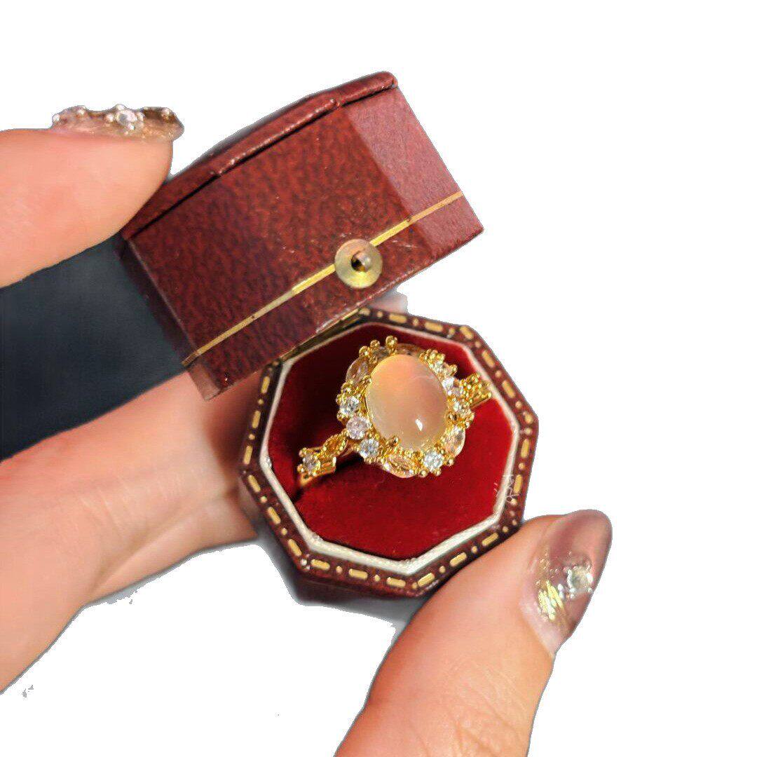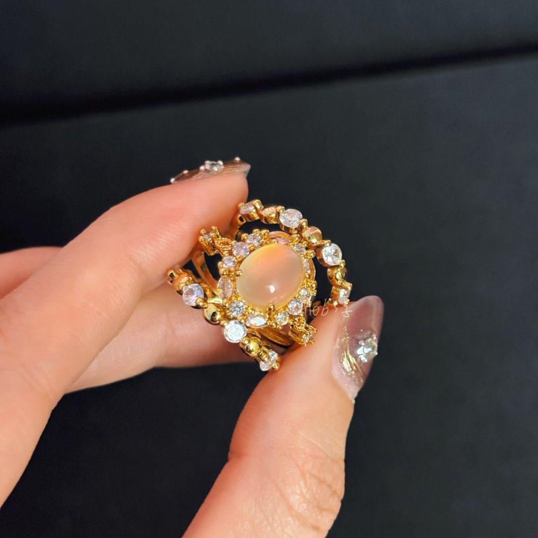 新款烟雨超温柔白色蛋面戒指镶嵌精美奢华送女朋友礼物可调节指环