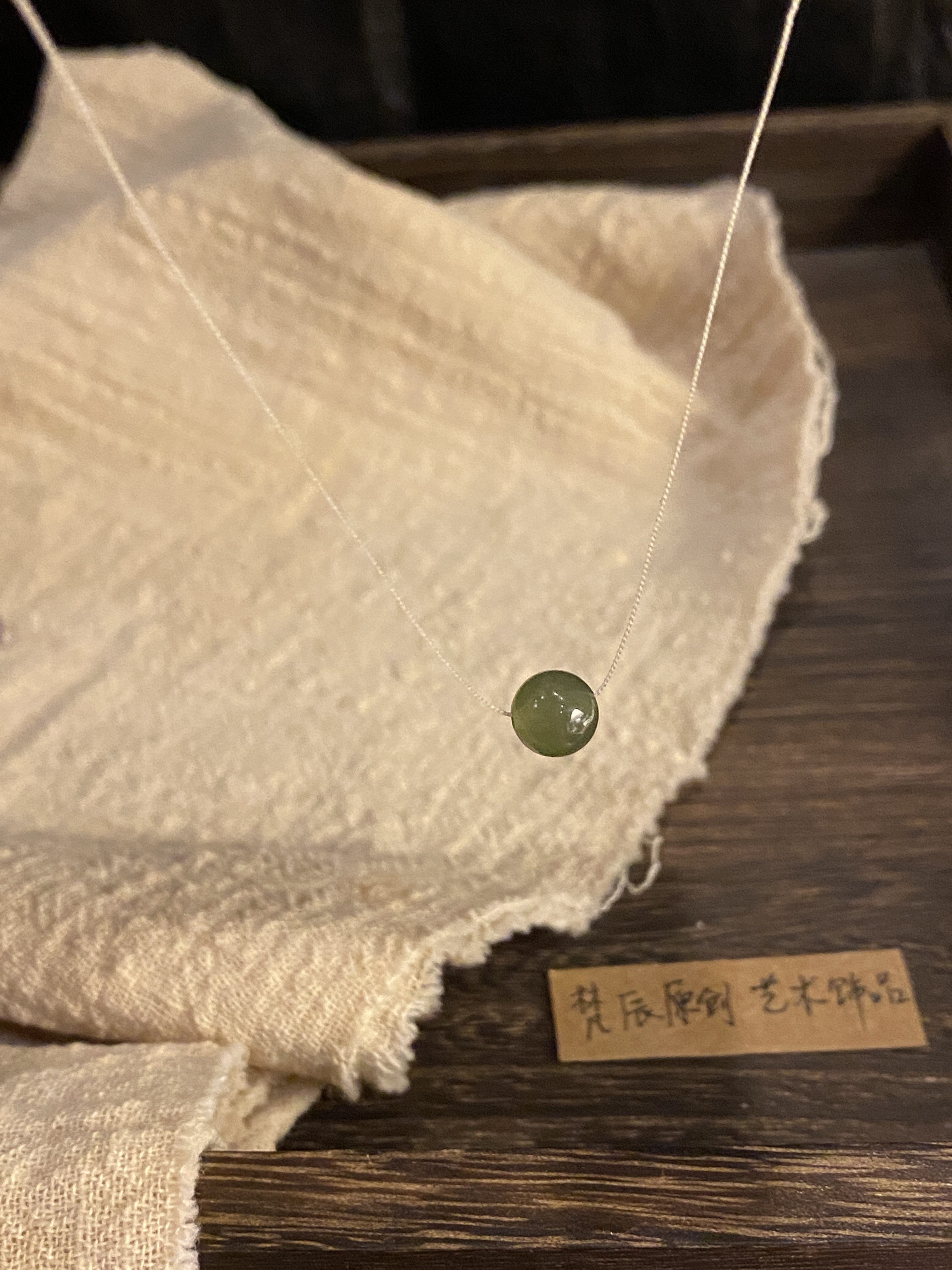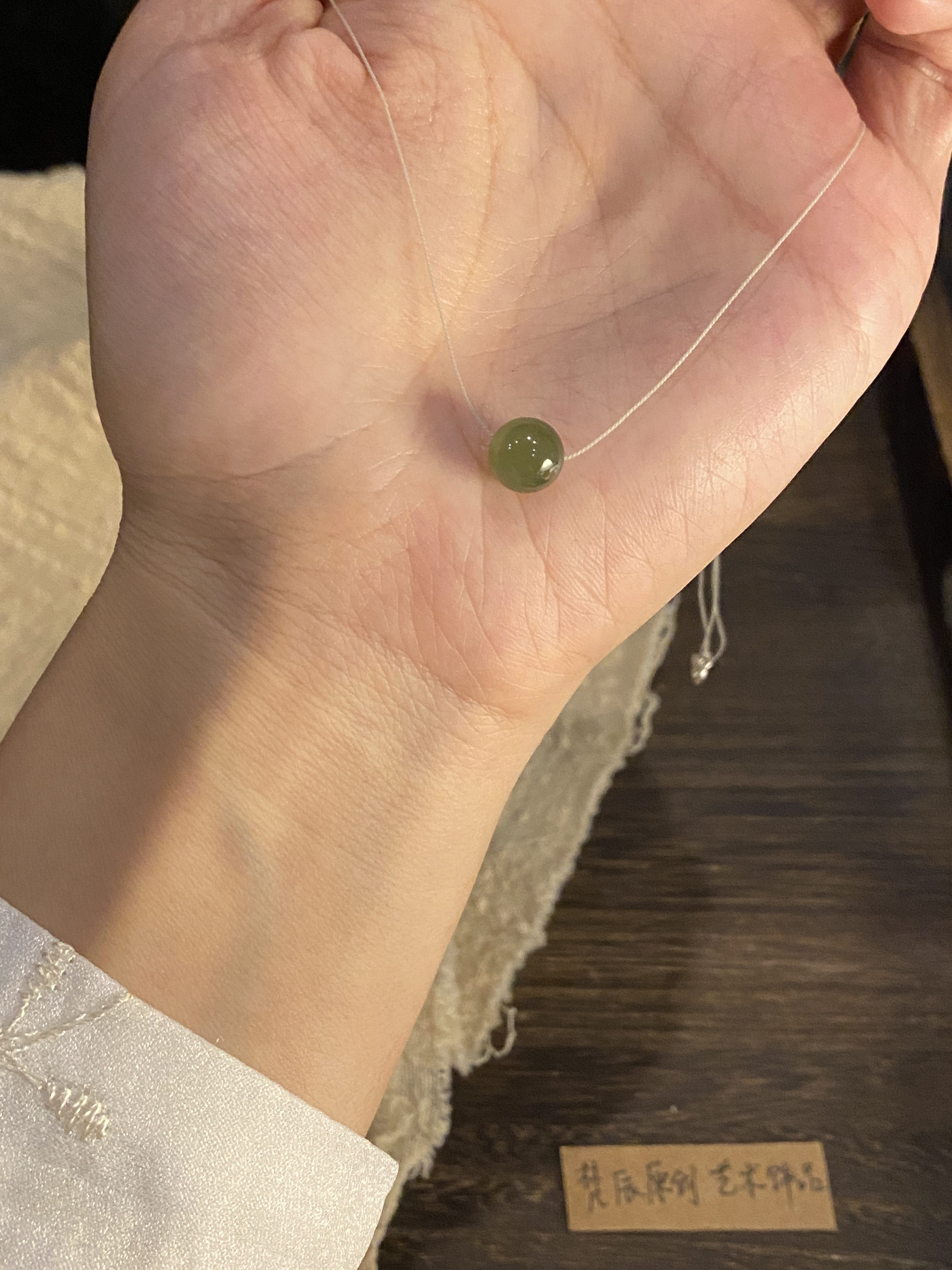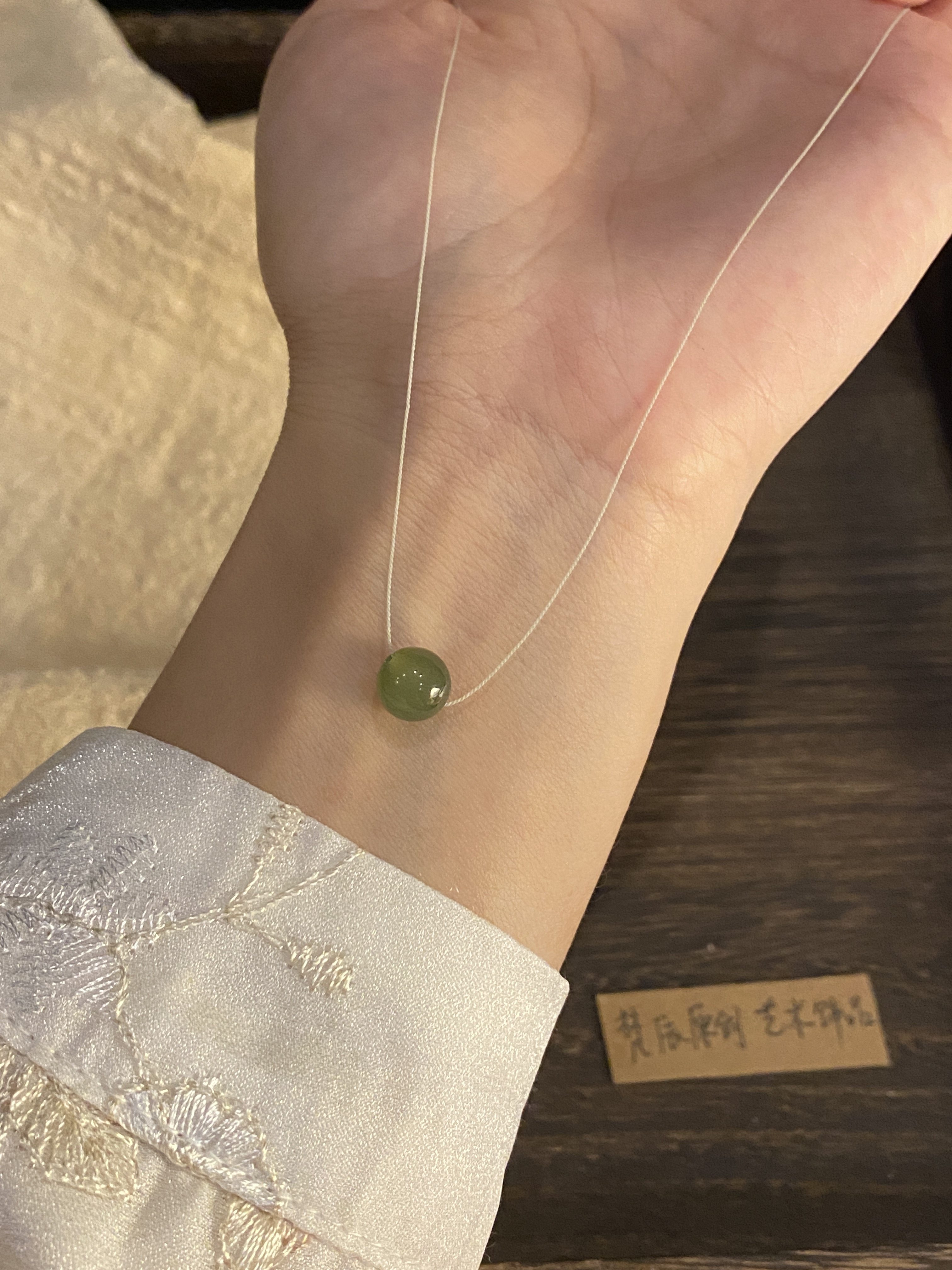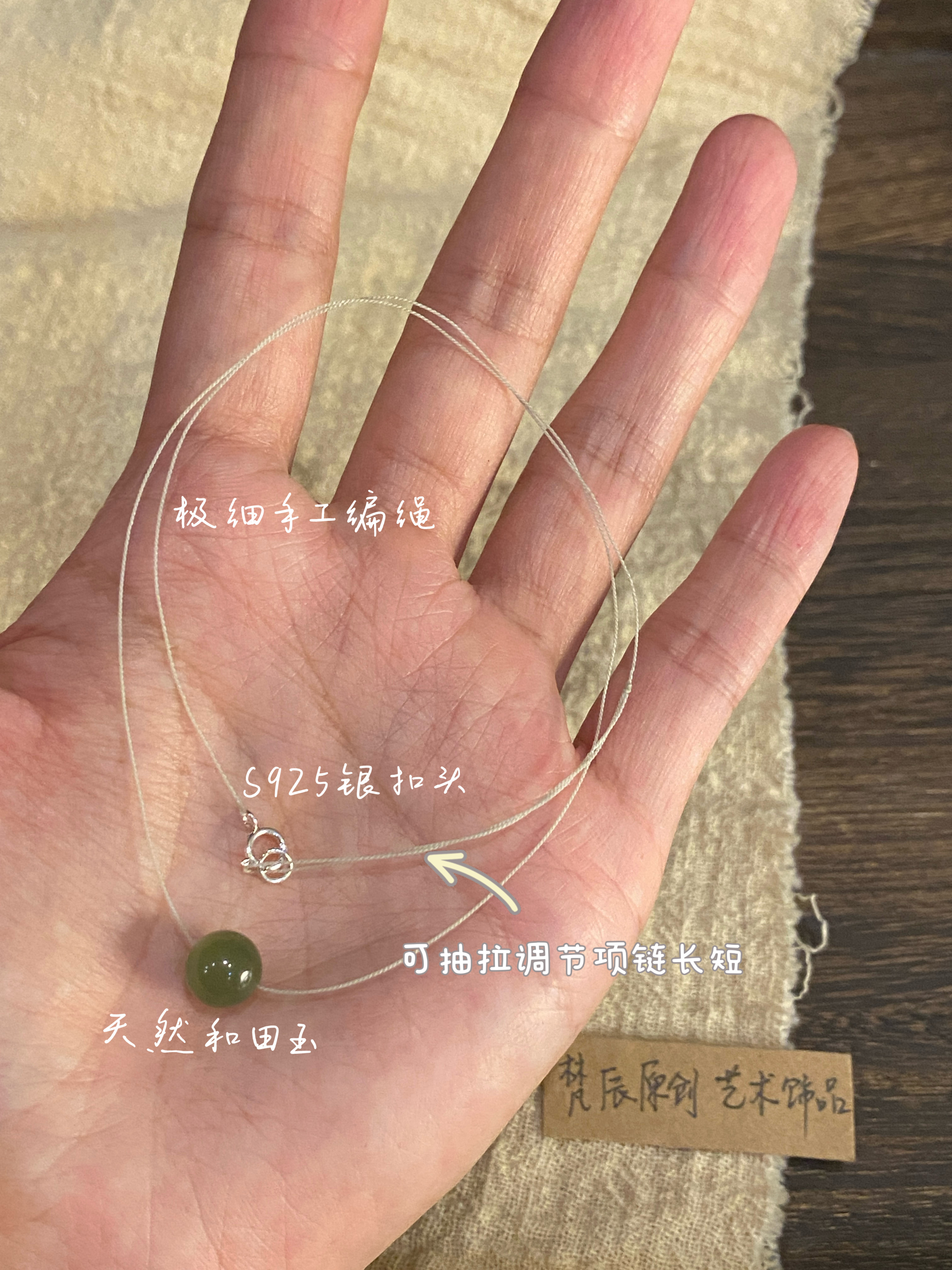 「烟雨青色」天然和田玉项链女高级感轻奢小众极细编绳碧玉锁骨链