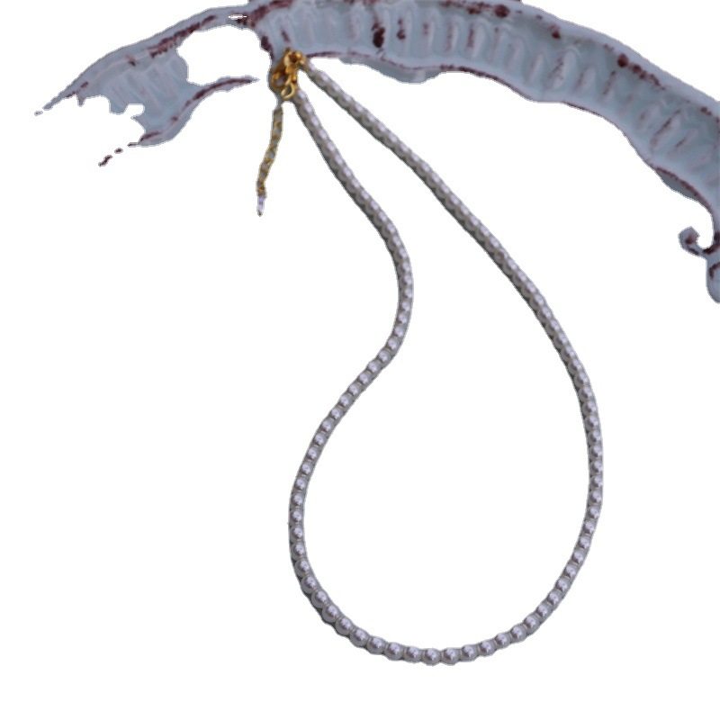suu 新款简约气质法式优雅4MM仿真珍珠项链亮珍珠素链锁骨链