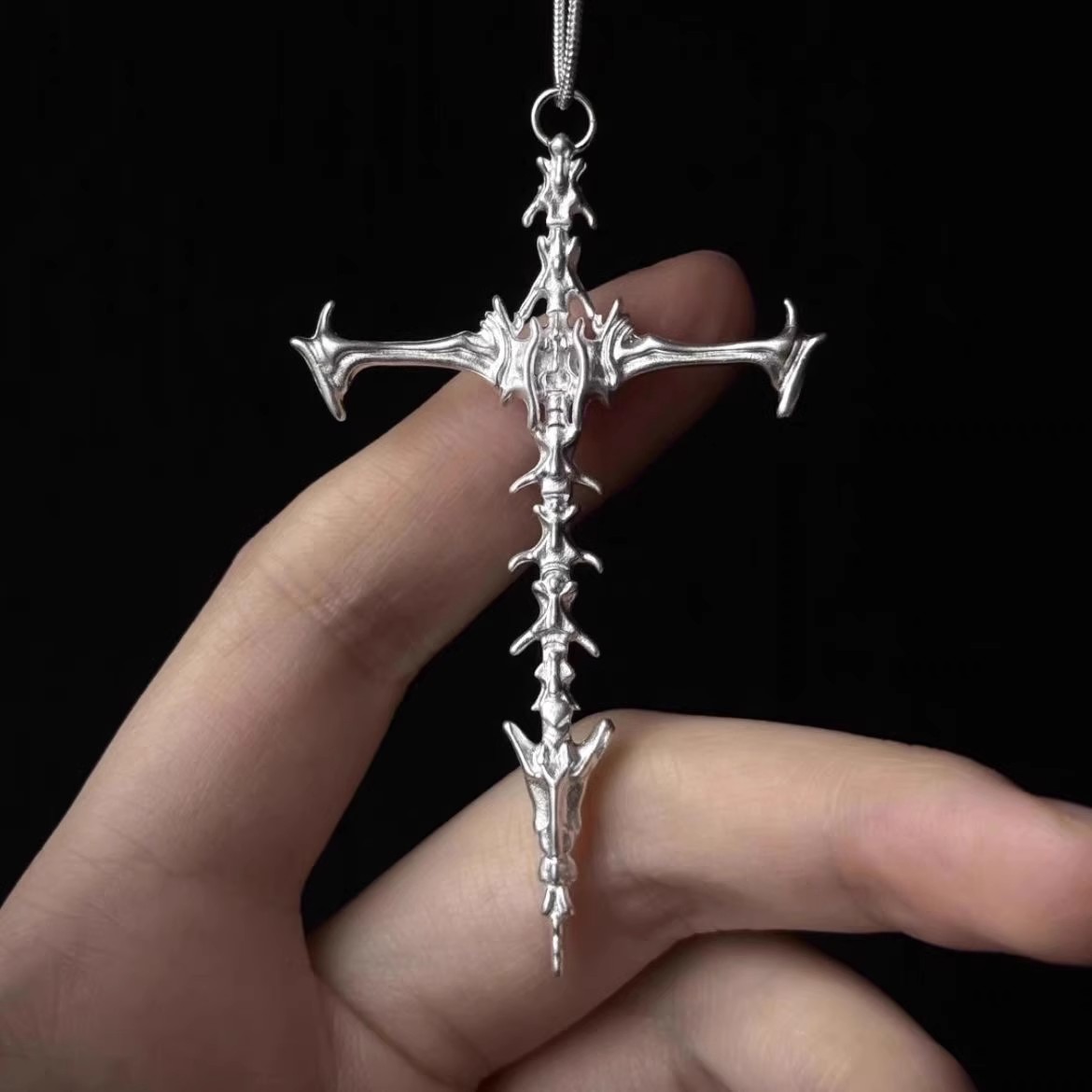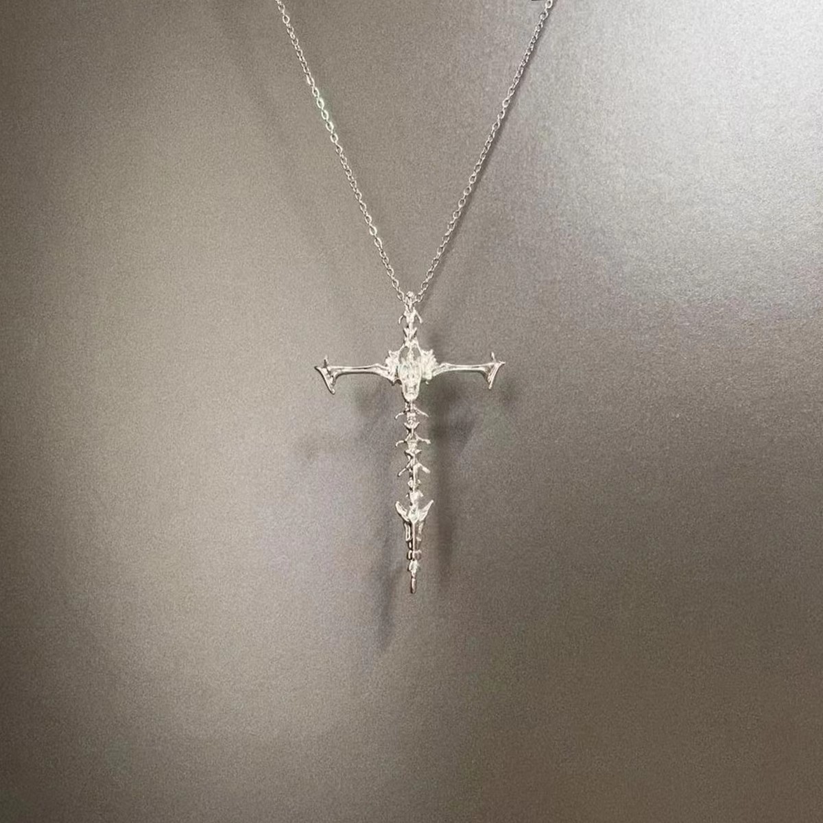 原创十字架暗黑高级感骸骨小众吊坠女辣妹锁骨链项链设计饰品钛钢
