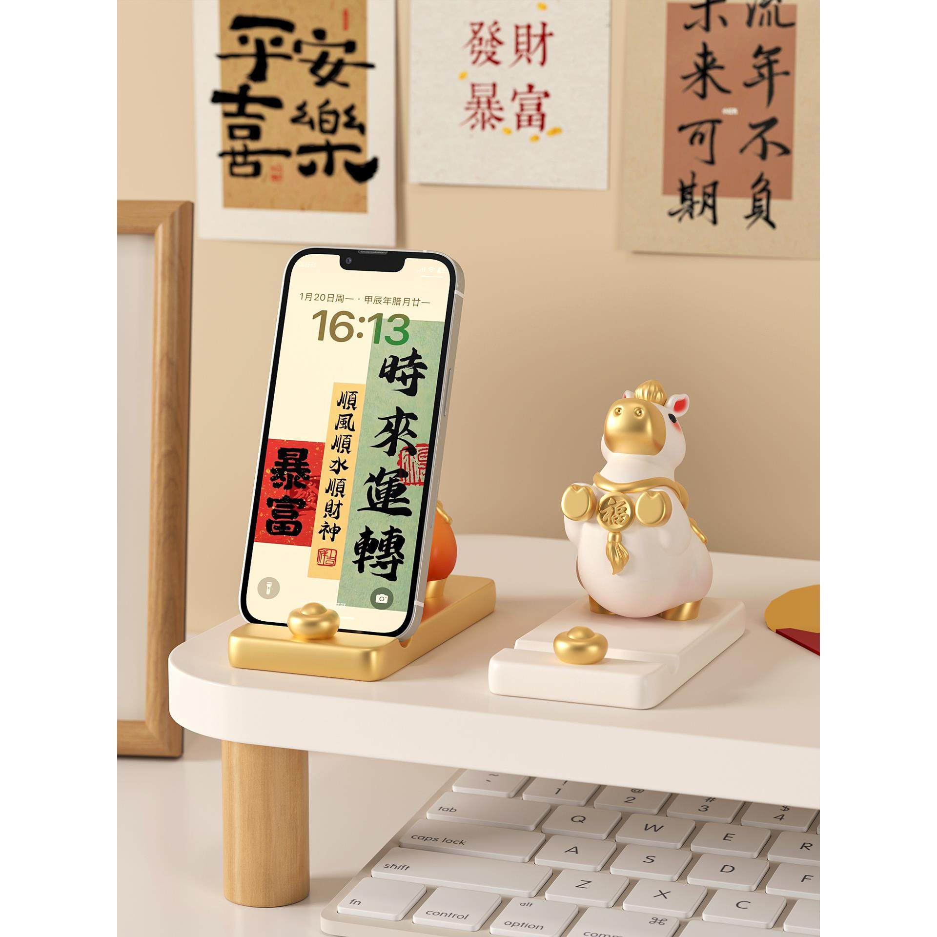 马上来财手机支架桌面摆件办公室工位稳定情绪神器装饰生日礼物女