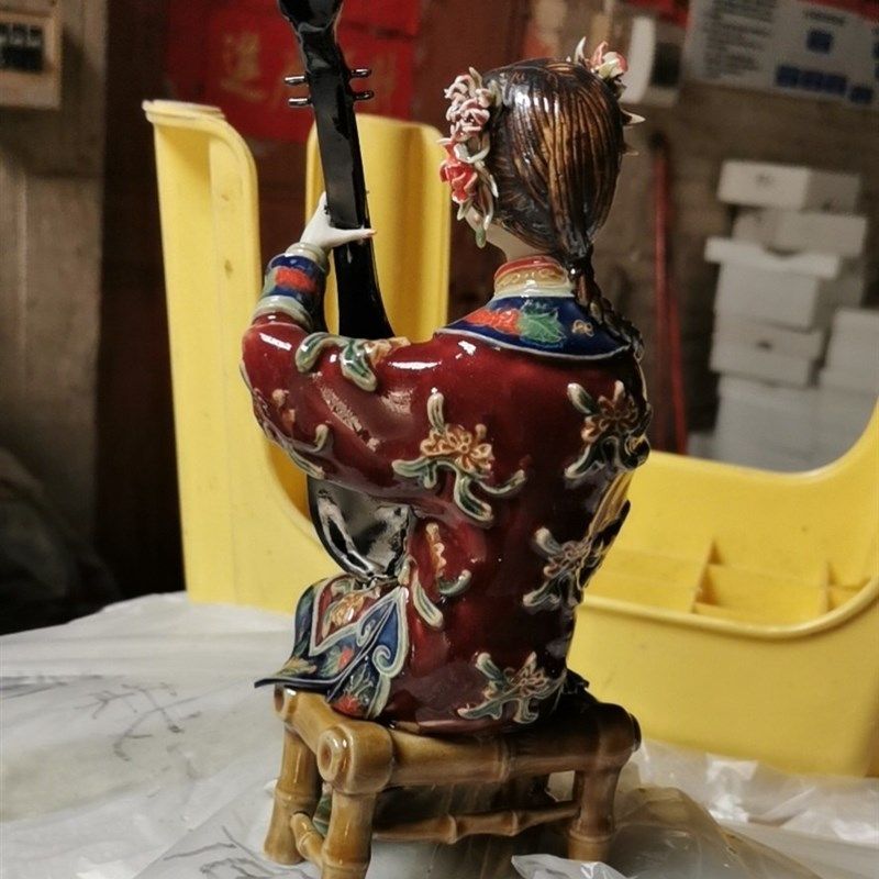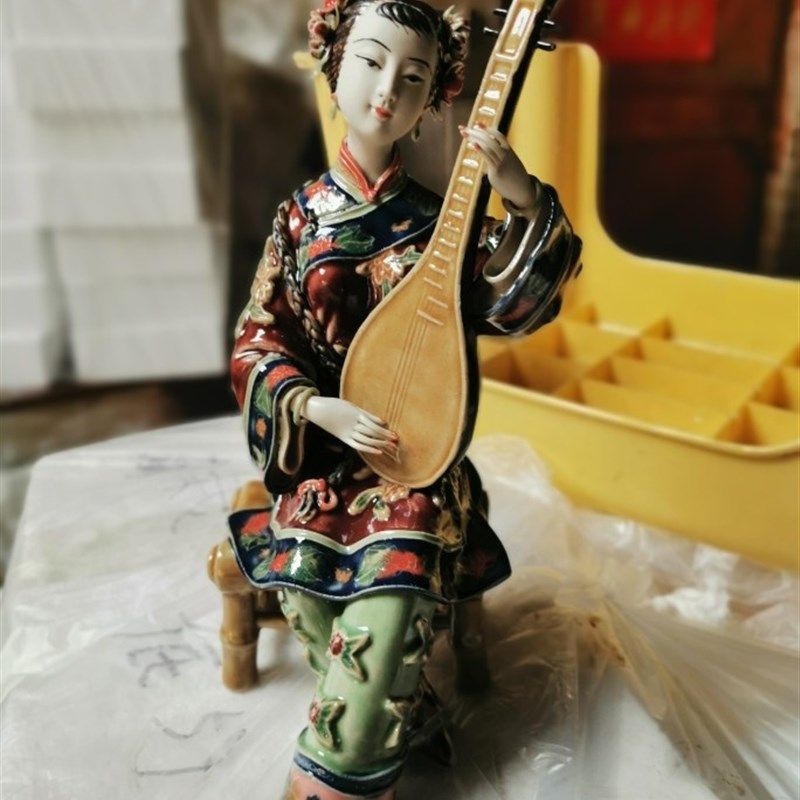 石湾陶瓷公仔五乐仕女手工摆件家居客厅店铺创意礼品装饰摆设