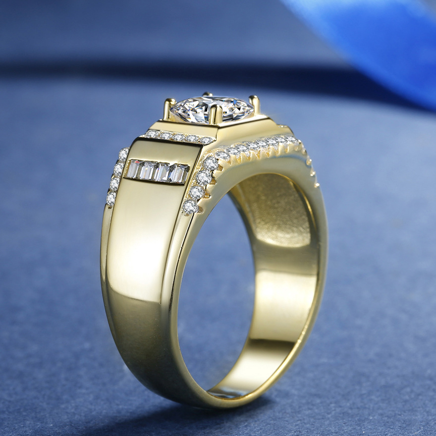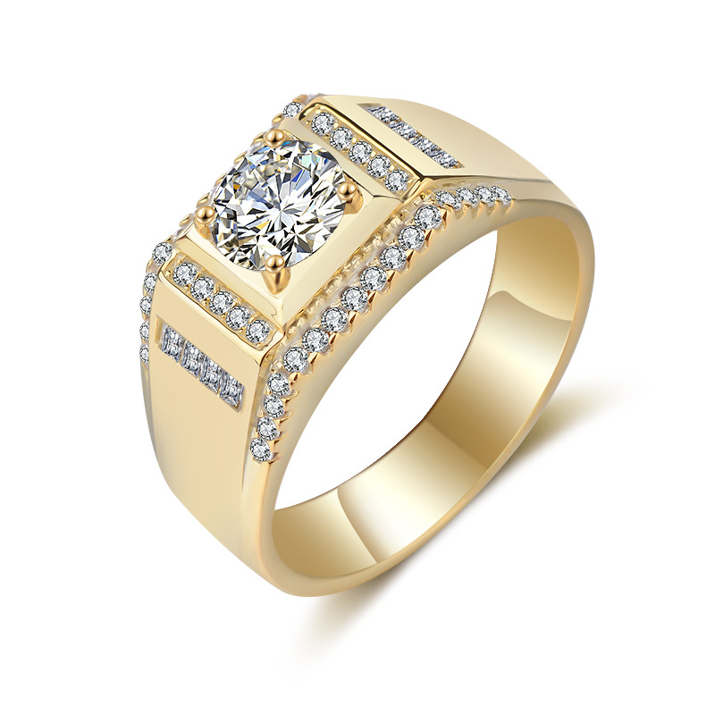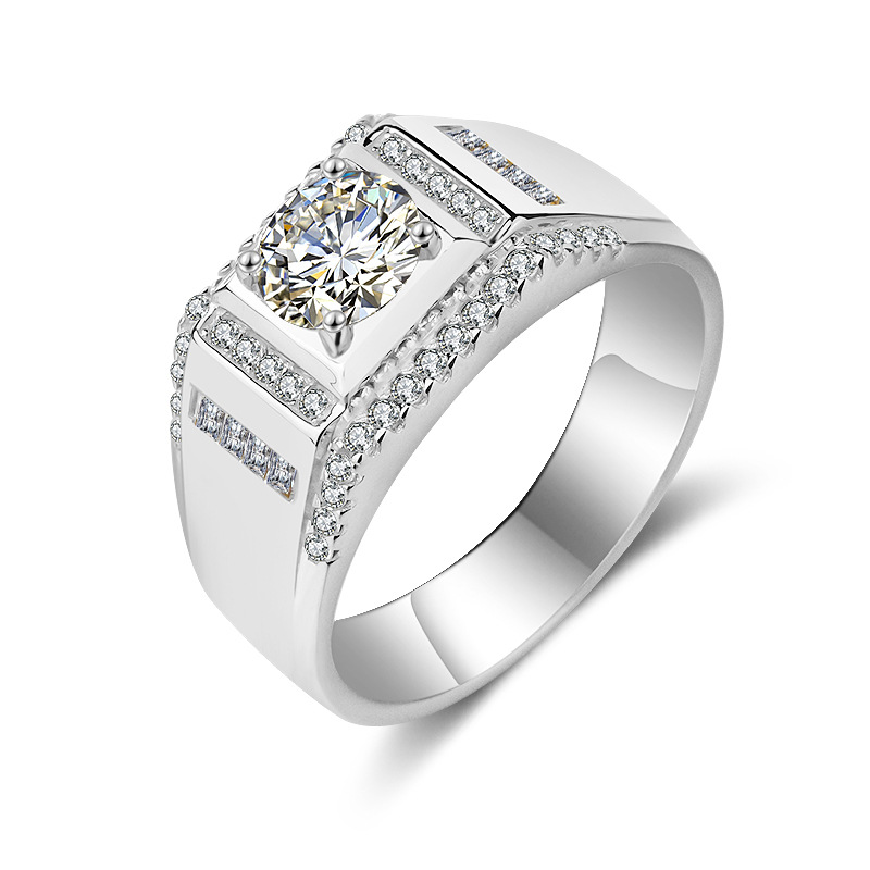 男士满钻豪气1.25克拉钻戒镀白金黄金色大气男款戒指
