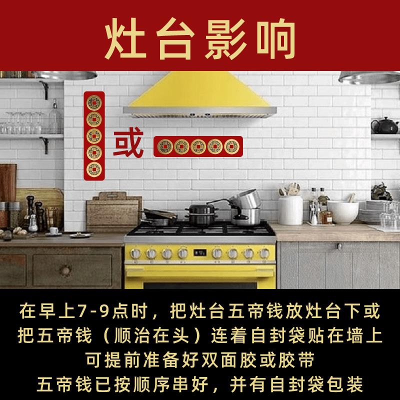 灶台朝西化解开门见灶对门盘子厨房龙头挂件炉灶对冰箱铜五帝钱