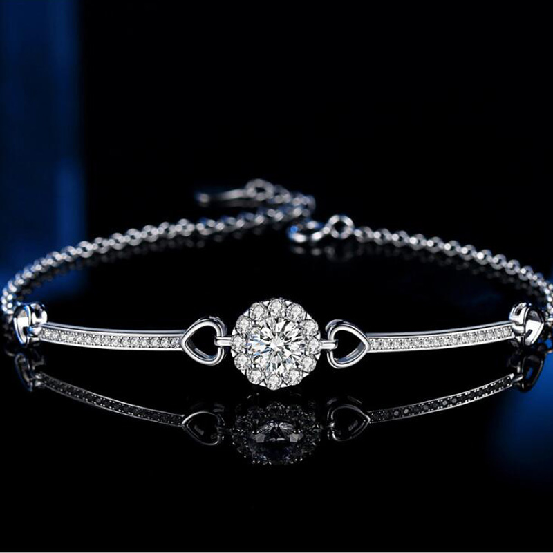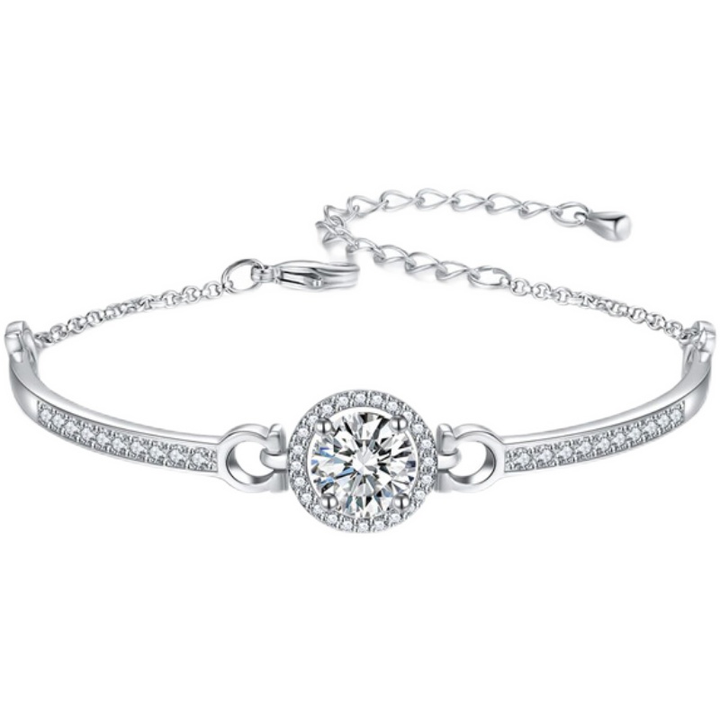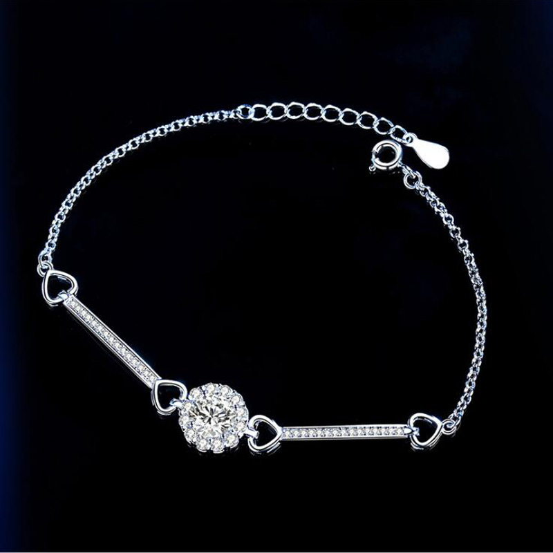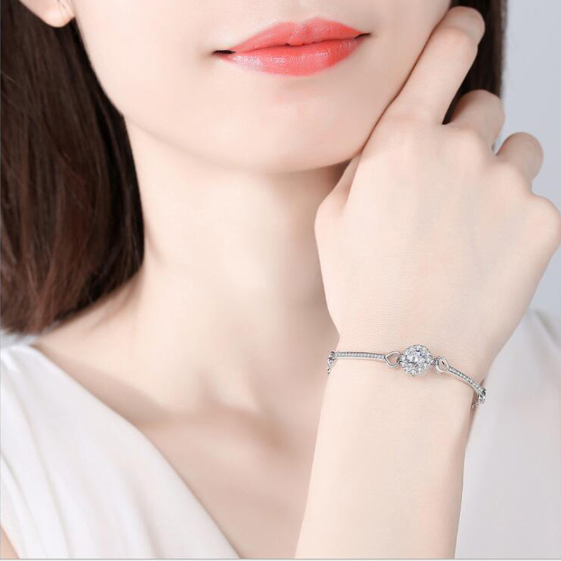 莫桑石S925纯银太阳花手链简约个性女款时尚1克拉百搭送女友礼物